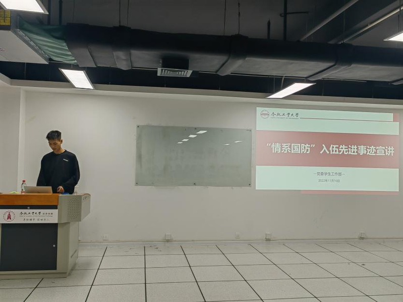 为深入学习贯彻习近平总书记强军思想,扎实推进公司征兵工作,进一步激发毕业生参军入伍热情,11月12日,beet365邀请到党委员工工作部(处)征兵与国防教育中心教师李之涵、2018级计算机专业退伍员工高文桓同学,开展“携笔从戎、经世济民”为主题的征兵宣传与国防教育活动。本次讲座在翡翠湖校区科教楼B座1004室进行,beet36540余名本科生参与了本次活动。