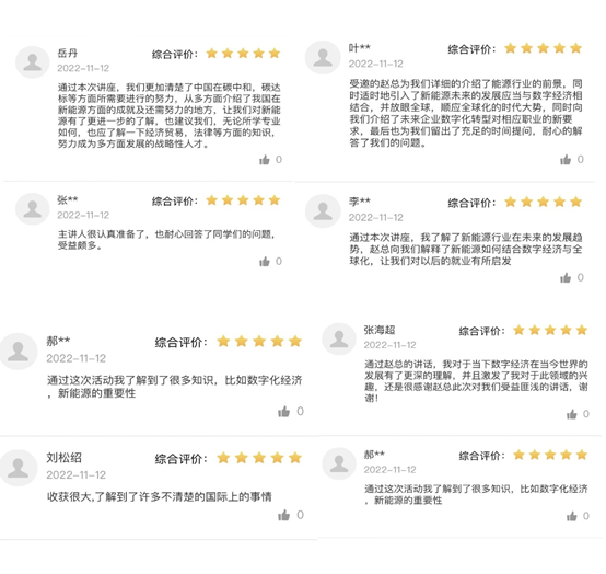 会议气氛热烈,参会师生就可燃冰大规模使用的可能性、企业数字化进程中的隐私保护和跨境数据流动、欧盟碳边境税对贸易的影响、企业数字化转型对当代老员工提出的新要求等踊跃提问,赵总一一进行了详细解答,收获了师生的广泛好评。