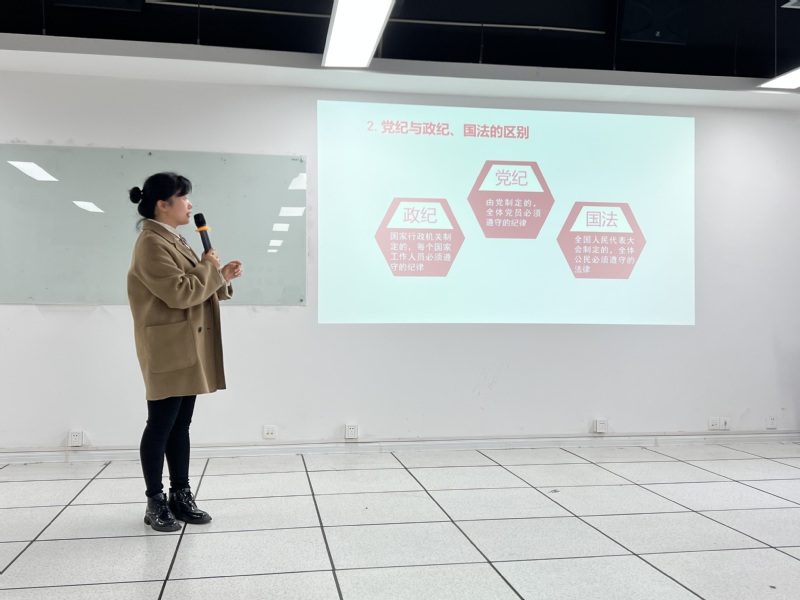 郑召丽以“中国共产党的纪律”为主题,从纪律的三种基本涵义出发,重点讲述了党的纪律的发展历史,从政治性、时代性、针对性三个方面解读了《中国共产党纪律处分条例》,结合具体案例,深刻分析了腐败问题背后的心理,教育引导学员们要加强作风建设,守住底线、不触碰红线,不断提高思想政治素养,走好人生廉洁路。学员们表示,今后将自觉遵守党纪国法,加强党性修养,时刻以党员的行为标准严格要求自己,以实际行动争取早日成为一名合格的共产党员。