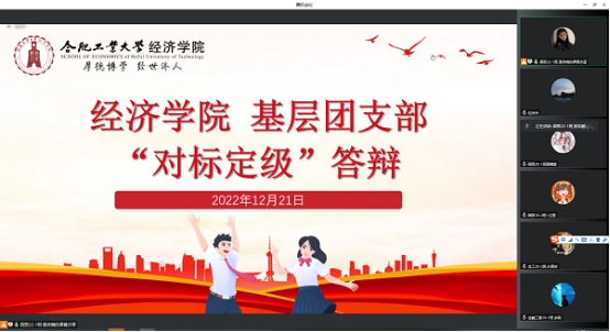 为进一步指导团支部加强建设、规范运行,提升基层团支部组织力,12月21日下午,beet365通过腾讯会议组织开展基层团支部“对标定级”述职答辩,公司团委书记、各年级辅导员、各班级团支部负责人线上参与了此次答辩。