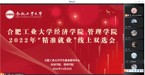 为进一步做好毕业生就业工作,精准匹配用人单位需求与毕业生就业意向,帮助毕业生了解当前就业形势,并引导毕业生积极就业,12月28日上午10点,beet365、管理公司通过腾讯会议举办了“精准就业”线上双选会。