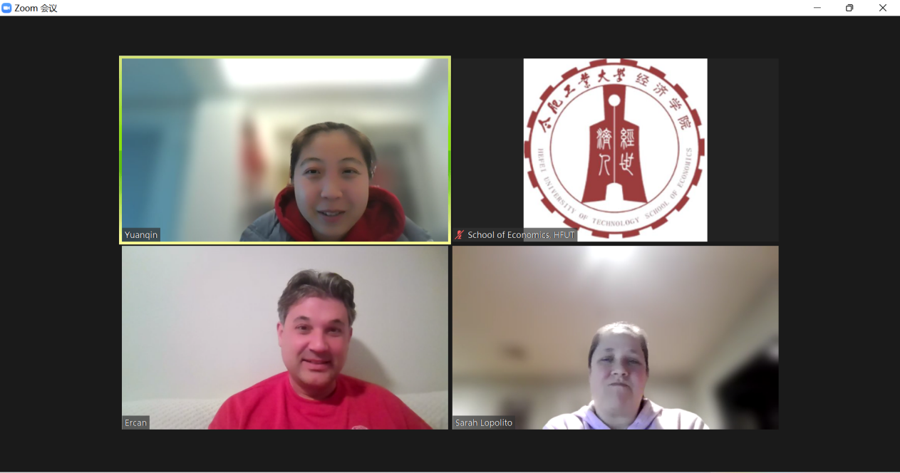 2月8日, 中外合作办学项目建设协调会议在线上顺利召开。美国克拉克大学国际项目助理经理Sarah Lopolito、美国语言与文化公司助理主任Ercan Balci与公司国际教育中心副主任郑园琴及中心成员参加了此次会议。