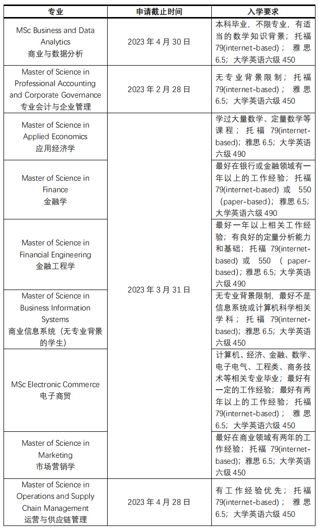 根据香港各院校官网资讯,商科及部分社科主要有以下专业还可申请: