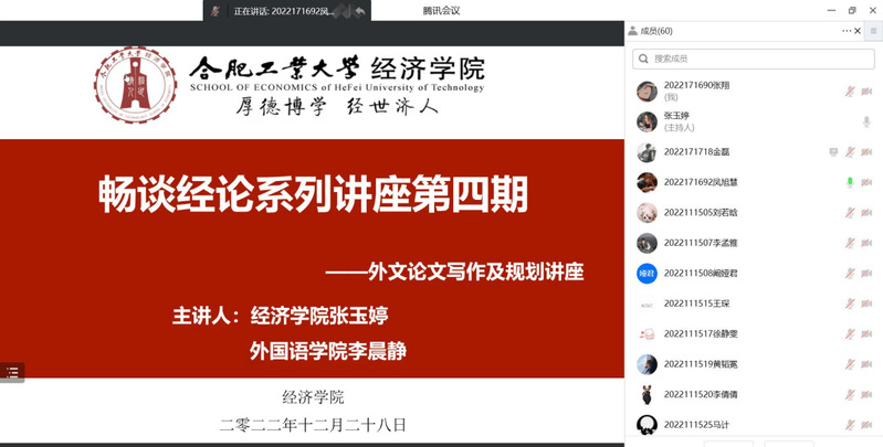 12月28日下午,beet365举办了“畅谈经论第四期——外文论文写作及规划”讲座。2020级英语语言文学硕士研究生李晨静受邀进行了本期经验分享会。