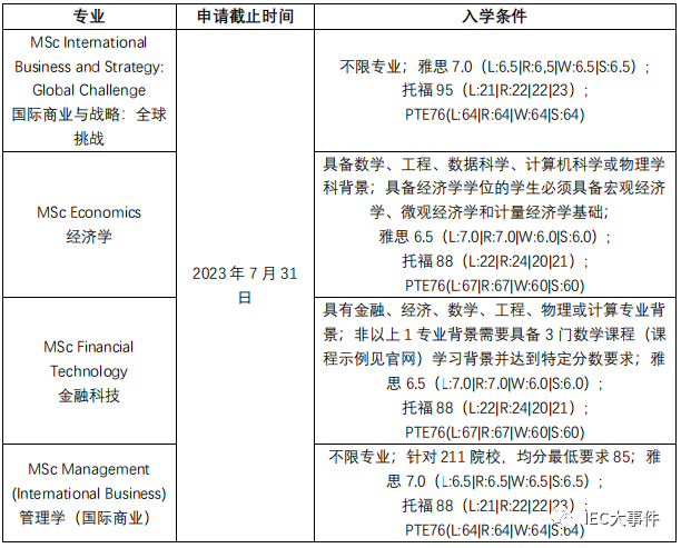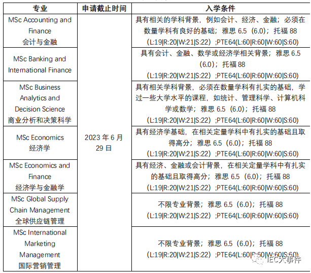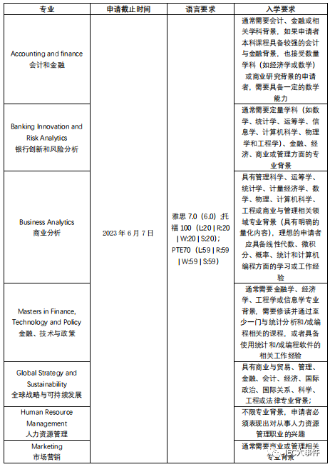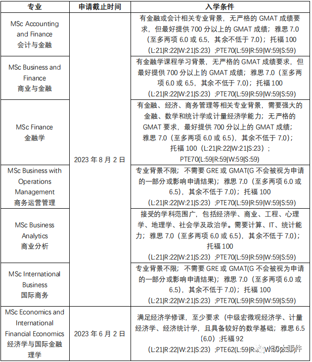 时间来到了2月中,英国各高校已经陆陆续续发了几轮offer,为了让同学们更好把握申请机会,我们特意梳理了一遍英国各主要高校商科研究生2023Fall申请截止的时间与入学条件。希望对同学们有所帮助~