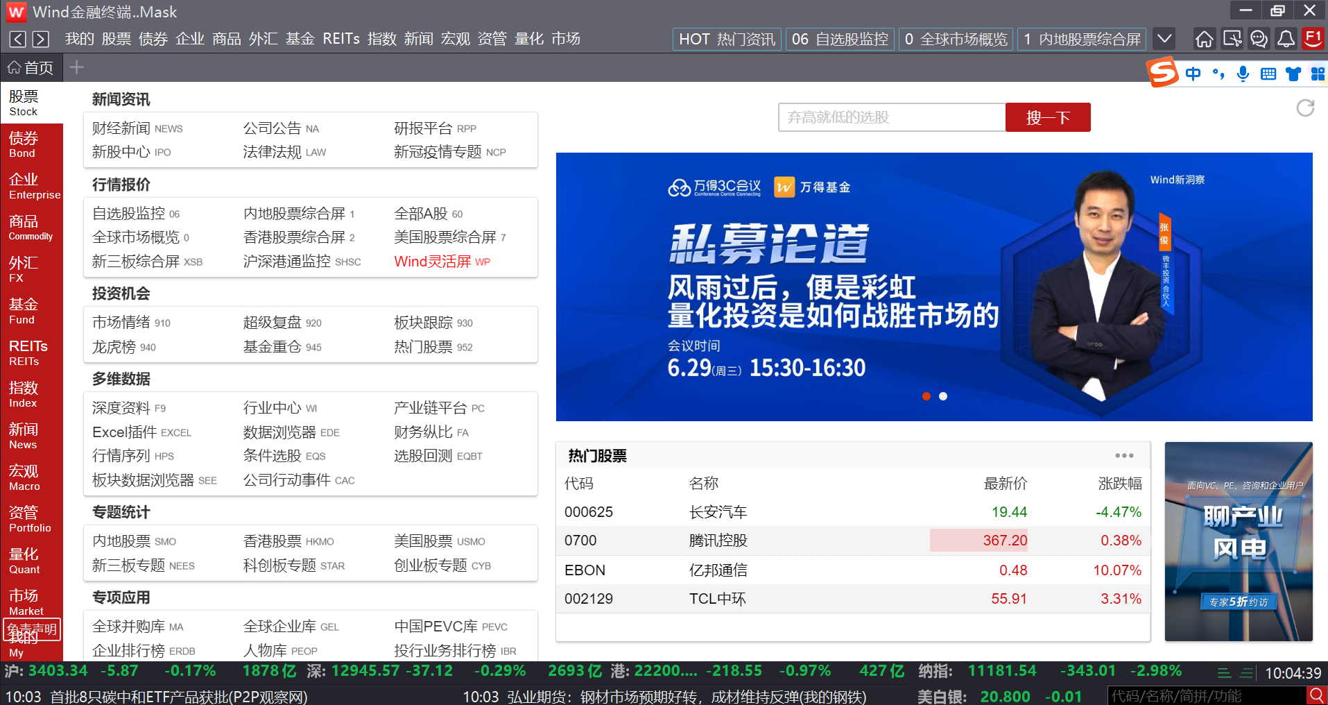 (Wind 数据库主界面)