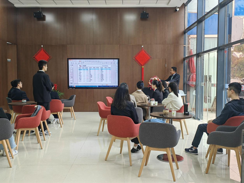 活动过程中,营业部总监曹庆宗为同学们详细地介绍了公司及营业部的发展历程、公司业务等,并讲解了证券行业相关知识,解读了相关政策,使得同学们对证券行业有了更深入的了解。双方就学科发展、人才培养、员工实习就业等方面进行了深入交谈,在员工培养、实习就业等方面校企合作达成了共识,并针对后续合作细节展开了深入探讨。