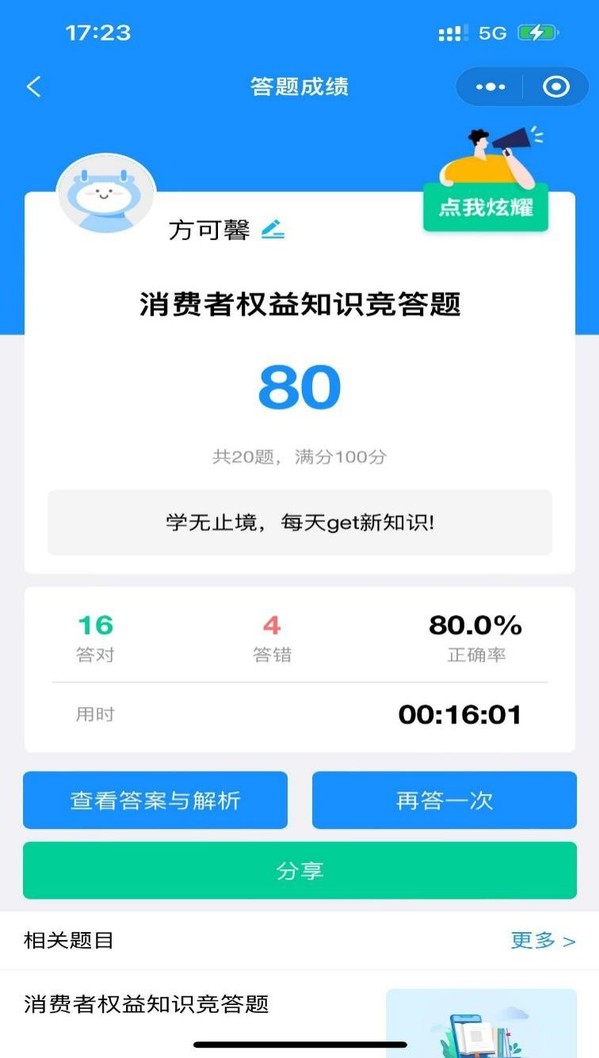 本次活动面向beet3652021级和2022级研究生,通过线上答题的方式开展了关于消费者权益的问答,178人参加了此次活动,其中176人答题合格。