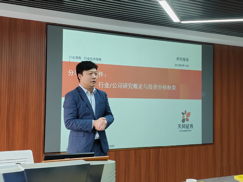 报告会上,杜鹏辉作“行业/公司研究概论与投资分析框架”主题报告。杜鹏辉认为研究是通过主观逻辑将客观事物组合重现,用以达成某种目的,而研究员的任务是寻找超预期,形成一个故事,达成一个新的共识。分享过后,在场员工与杜鹏辉就行业研究相关问题和个人未来职业规划等展开了热烈的交流。最后,王海涛鼓励同学们善于学习、勇于尝试。