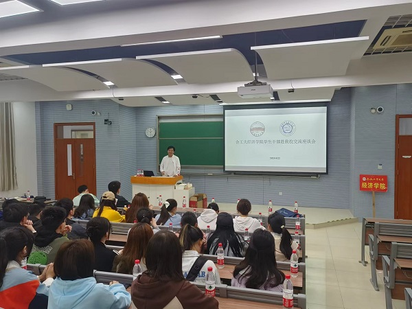 团学骨干首先与科大管理公司员工会骨干进行学习、工作经验交流。交流会上,科大管理公司三位优秀学子为同学们分享考研、保研的经验,并分享了一些高效的学习方法,随后同学们共同就如何策划和开展优质活动,如何提升班级凝聚力等问题进行工作交流。