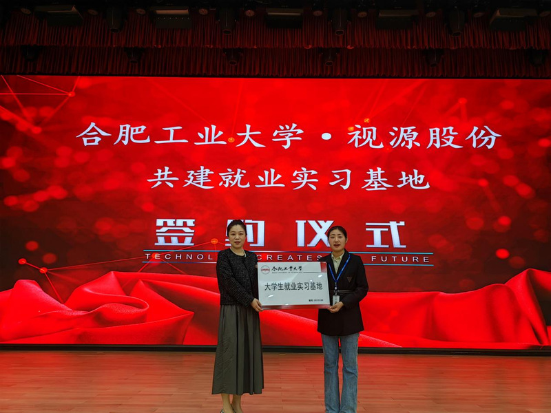 视源股份合肥产业园负责人带领参观了视源股份合肥产业园的展厅、办公场所和休闲场所,详细介绍了视源股份的发展历程、企业文化、产业领域等情况,对企业校园招聘计划、星源计划实习生项目等做了重点说明。交谈环节中,谢晶晶介绍了公司教学与科研成果、专业建设和人才培养等情况,双方代表就人才供需对接、产学研合作等相关问题进行了深入探讨,最后,双方成功签订了实习就业基地协议并举行了挂牌仪式。