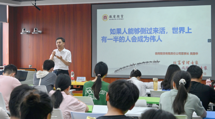 5月27日,公司在翡翠科教楼B座1101室举行职业生涯规划系列讲座“企业大咖说”,讲座邀请到徽商期货公司党总支书记、董事长吴国华高级经济师担任主讲,为同学们做主题为“如果人能够倒过来活,世界上有一半的人会成为伟人”的职业生涯规划指导。