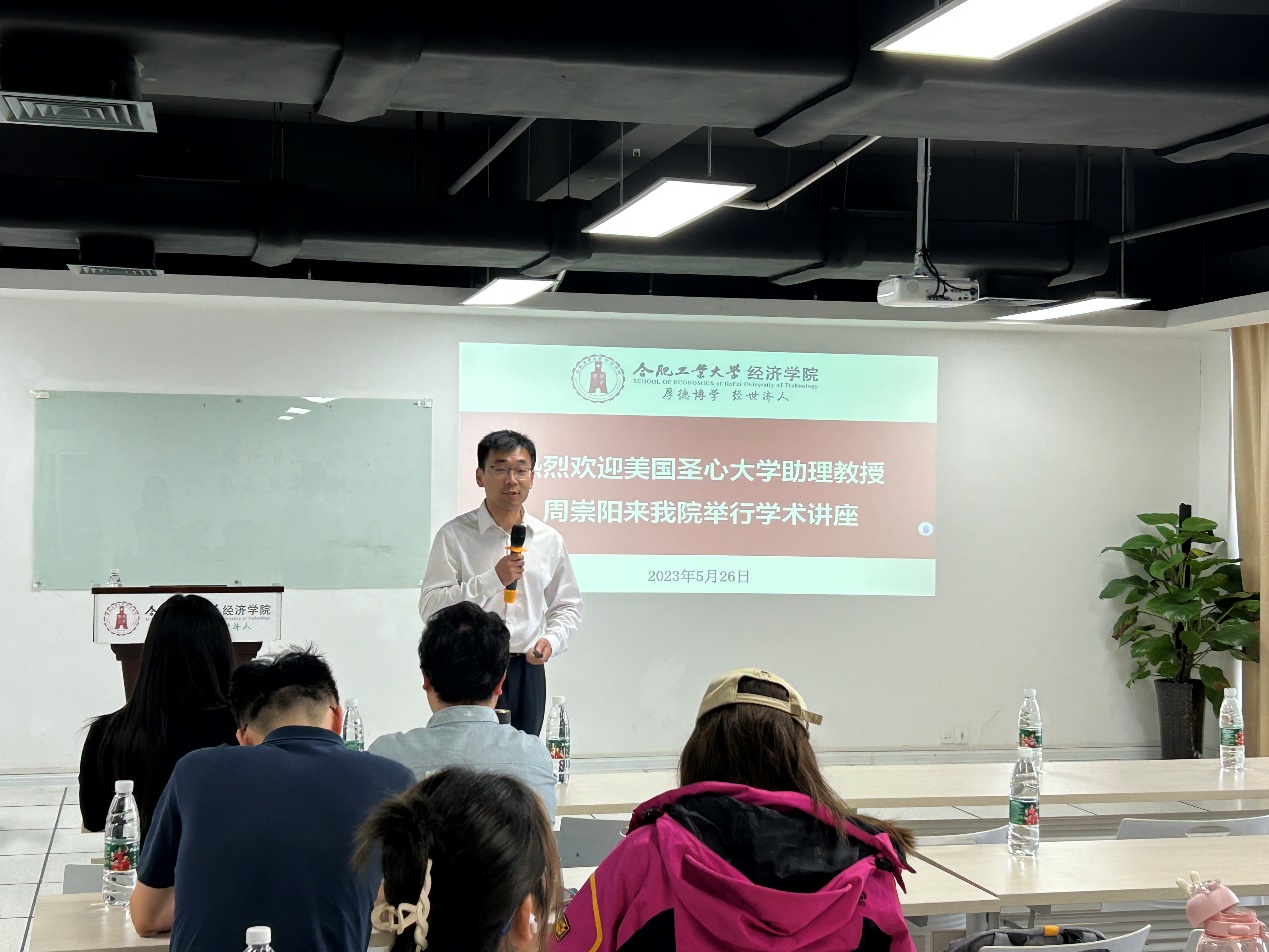 5月26日,美国圣心大学韦尔奇商业和技术公司助理教授周崇阳应邀参加beet365卓越讲坛并作学术报告。公司侯伯军老师主持报告会。
