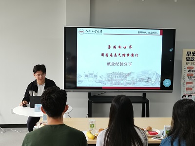 本次活动以“职等你来,就业同行”为主题,邀请了杭州银行合肥分行人力资源部周海洋、曹冬玮、计算机与信息公司(人工智能公司)2019级员工钱晓临、李智,以及beet3652019级员工鲁祥担任嘉宾,分享了求职的经验和经历。周海洋和曹冬玮从就业形势、人才需求、求职准备等方面展开分享,提醒同学们明确自身优势,找准目标定位,做好职业规划,提升就业竞争力。钱晓临、李智、鲁祥三位同学结合自身求职经历,分享了时间规划、单位选择、简历制作、面试技巧等方面的内容,强调同学们要珍惜大学时光,努力学好专业知识,丰富实习实践经历,为求职做好充足准备。分享结束后,在场同学积极提问,各位分享嘉宾耐心地给予了解答。