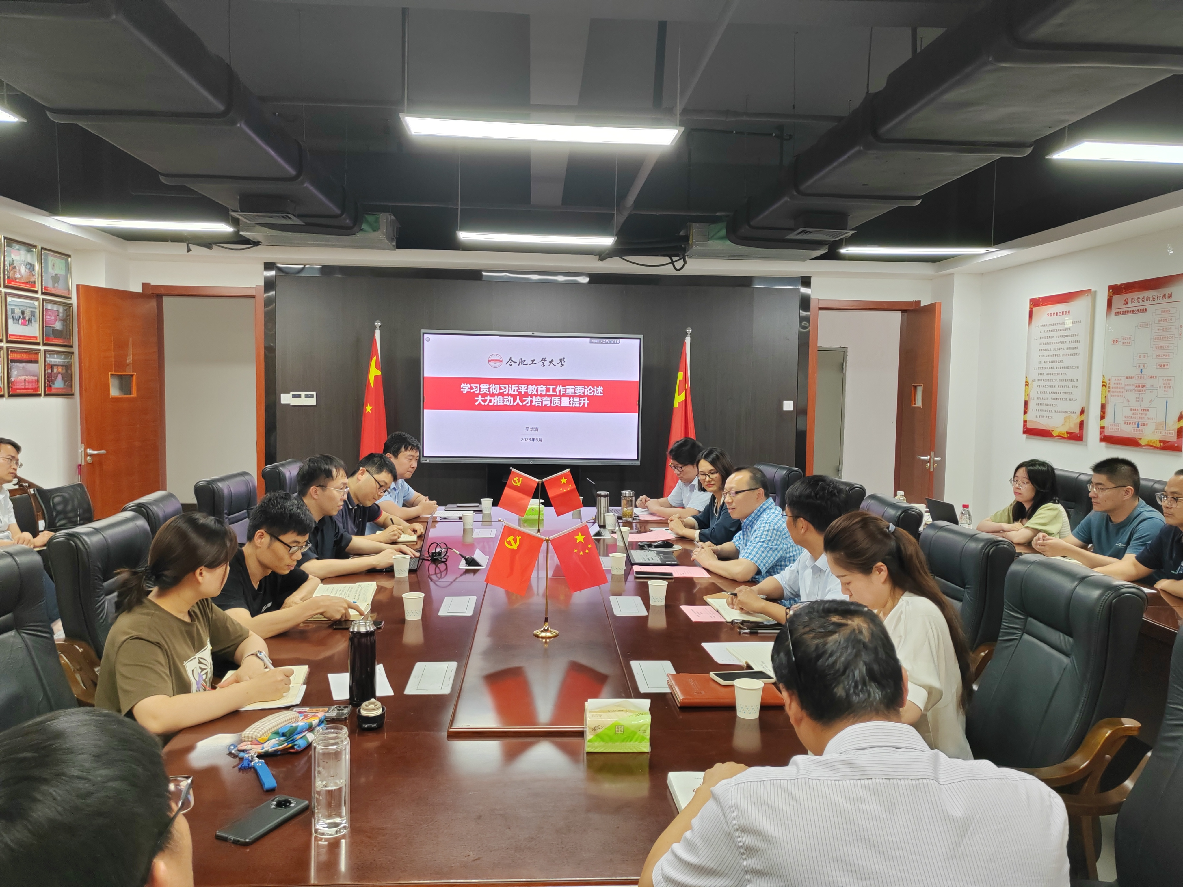 专题党课上,吴华清教授围绕“以学促干,推动人才培育质量提升”,结合理论学习和工作实际,重点强调了要坚持把立德树人作为根本任务,对员工的培养要注重创新思维的启迪,真正培养出会动脑筋、具有非凡创造能力的人才;要坚持扎根中国大地办教育,要办中国特色的世界一流大学,教育要服务国家,解决卡脑子、卡脖子、卡嗓子的难题,同时师生要切实参与到商业实践、政策制定和政策效果评价;要坚持深化教育改革创新,高等教育的高质量发展要真正做到“教育、科技与人才三位一体”,做到“科教融合、产教融合”,积极探索“教育数字化”,重点开展有组织科研,围绕“四个面向”组织大任务,根据任务需要建设大平台,依托大平台组建大团队;要坚持把教师队伍建设作为基础工作,号召教职工爱家爱国,关爱员工,最重要的是要有情怀与梦想,在个人成长路径上,追求卓越,争做既是教学能手,又是学术高手、智库专家的“全能型”教师。