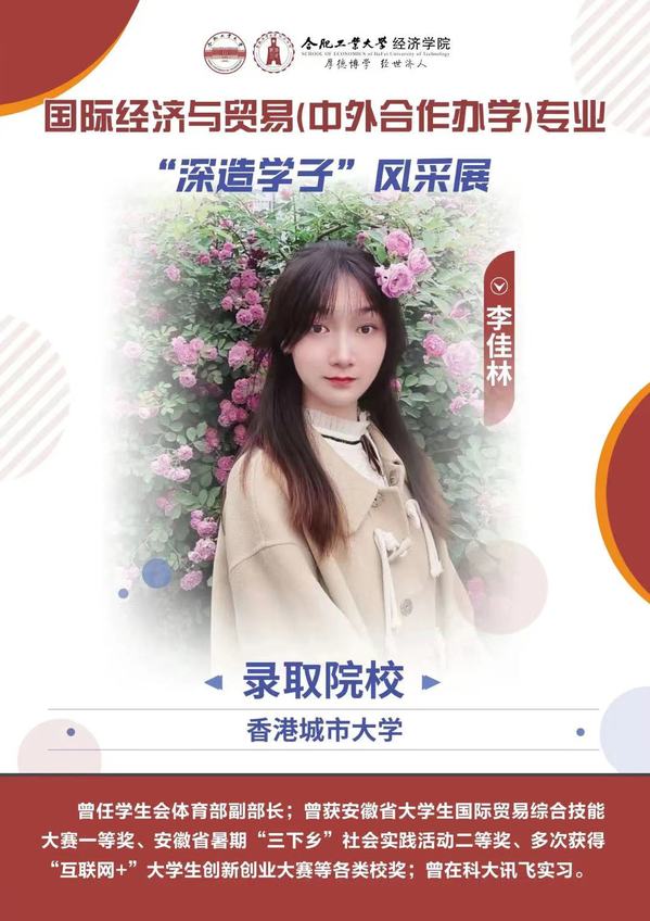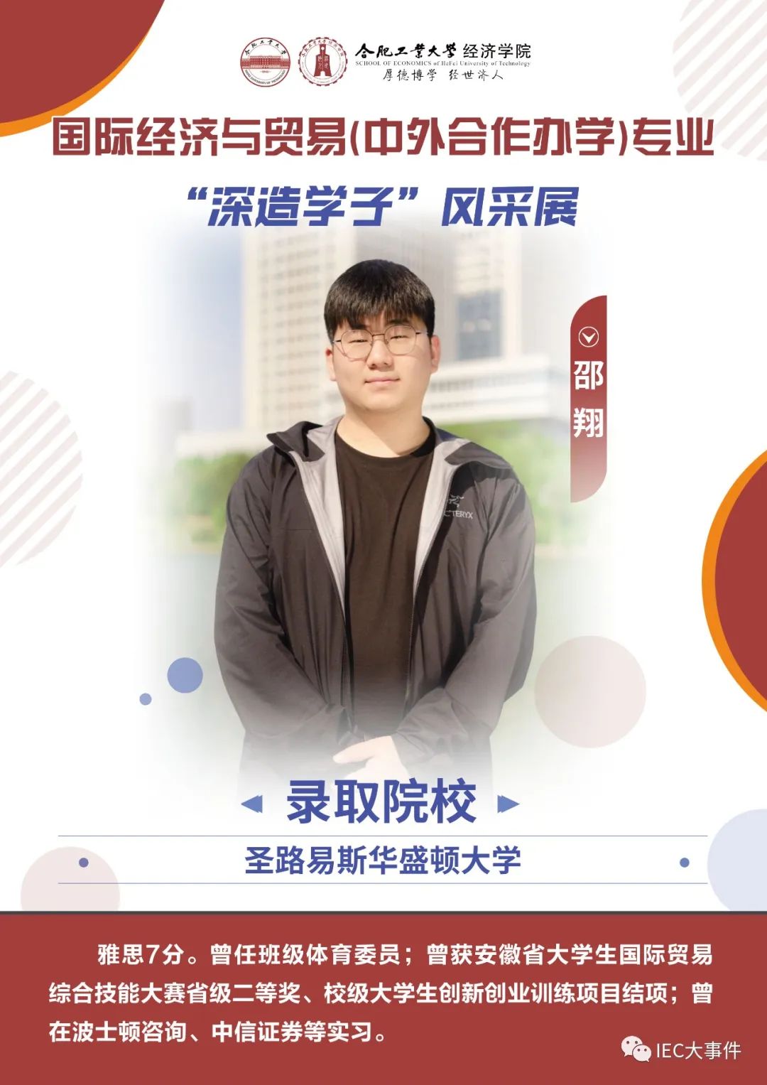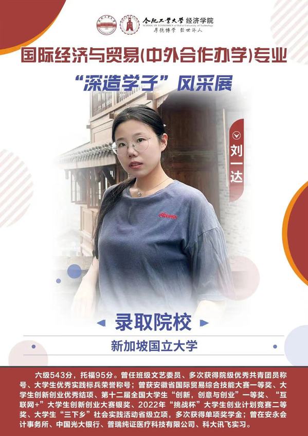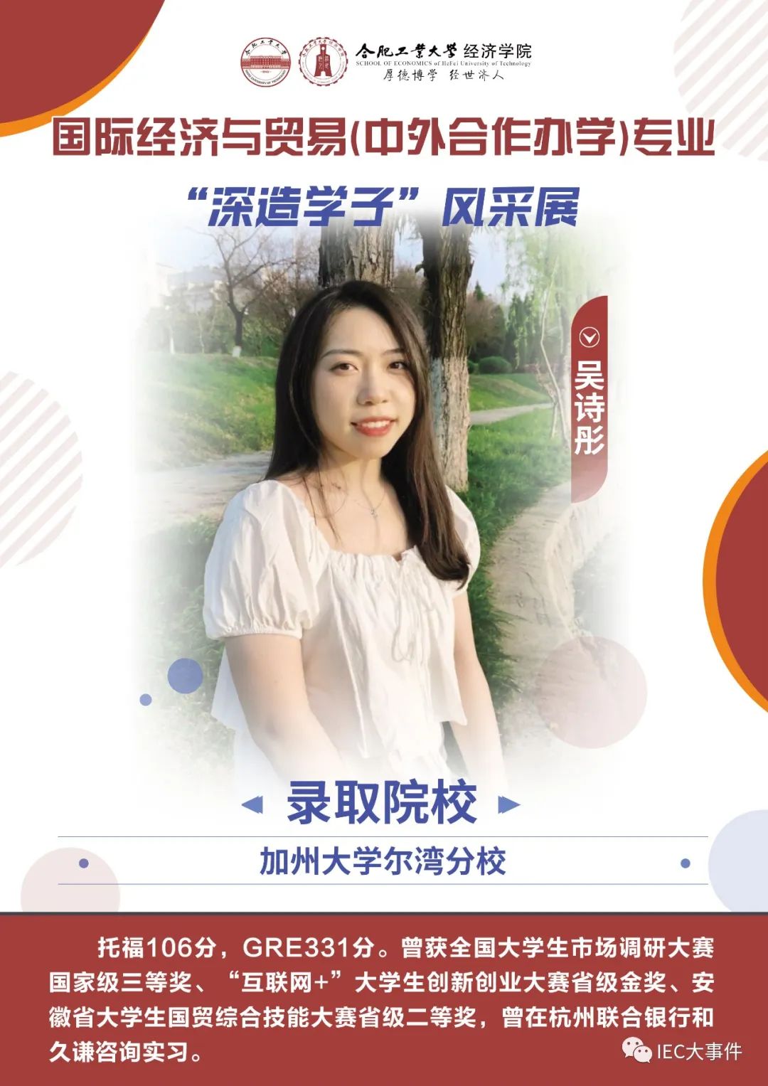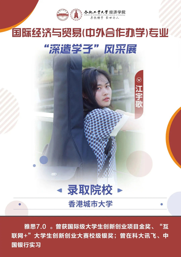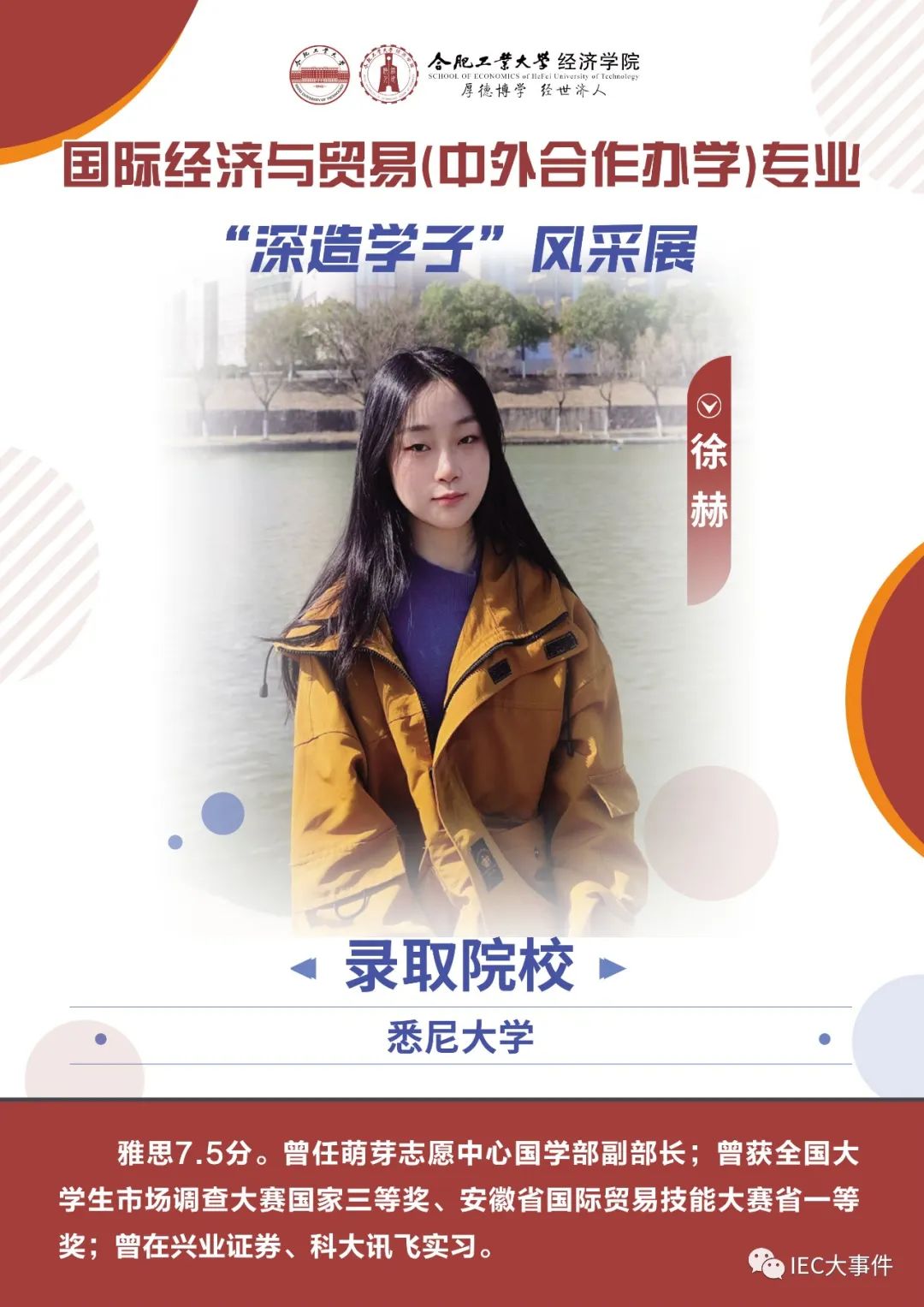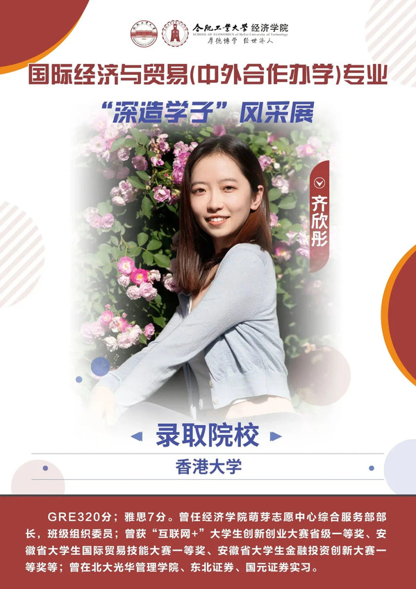 beet365官方网站国际经济与贸易(中外合作办学)专业是国家级一流本科专业建设点。本专业注重培养“强语言、精专业、通规则、能跨界”的高级复合型经贸人才。项目办学以来,人才培养成果呈现出“就业率高、就业单位质量高、升学率高、名校深造比率高、英语水平高”的“五高”显著特征。截至目前,2023届国际经济与贸易(中外合作办学)专业毕业生中,60.60%的员工获得国内外名校继续攻读硕士学位的资格。其中,出国出境深造学子中,约92%的员工被QS、U.S. News和Times排名世界Top100的名校录取,超过57.89%员工被QS、U.S. News和Times世界排名Top30的顶尖高校录取。另外,超过19%的员工被北京大学、复旦大学、中国科学技术大学、华中科技大学、北京理工大学、南开大学等国内名校录取。本期小编就带领大家共同领略部分国(境)外深造学子的风采。