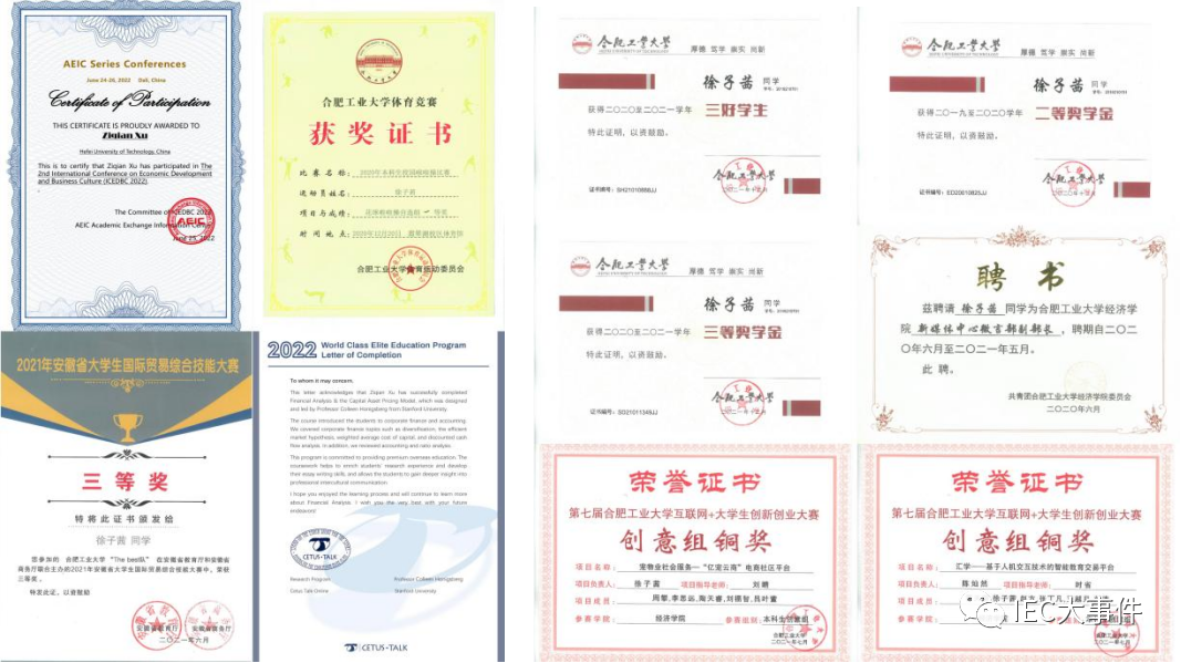 安徽省国贸技能大赛一等奖;