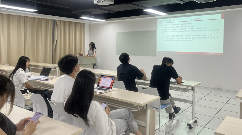 本次讲座中,李蓉、孙鑫琴两位同学依次进行论文汇报,详细介绍了论文指标测度、模型构建、基准结果与机制分析以及遇到的问题。汇报结束后,覃雄合与侯伯军两位老师分别就论文的实证结果解读、论文结构完善、分析机制优化等方面给出了意见和建议。接着,其他参会同学就论文展开了进一步讨论。