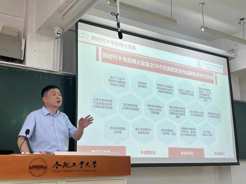 张炳武首先深入阐释了党的二十大的主题与重要意义,强调研究生深入学习贯彻习近平新时代中国特色社会主义思想的重要性。接着,张炳武从“深刻感受伟大变革”“深刻领悟伟大思想”“深刻认识伟大使命”“深刻理解伟大任务”“深刻领会伟大战略”五个层面循序渐进地引导研究生要积极响应国家号召,潜心学习,励志奉献,做有理想、敢担当、能吃苦、肯奋斗的新时代好青年。最后,张炳武以“未来”与“现在”为引,指出拥有清晰的目标兼以把握当下是研究生生涯有所成就的关键。
