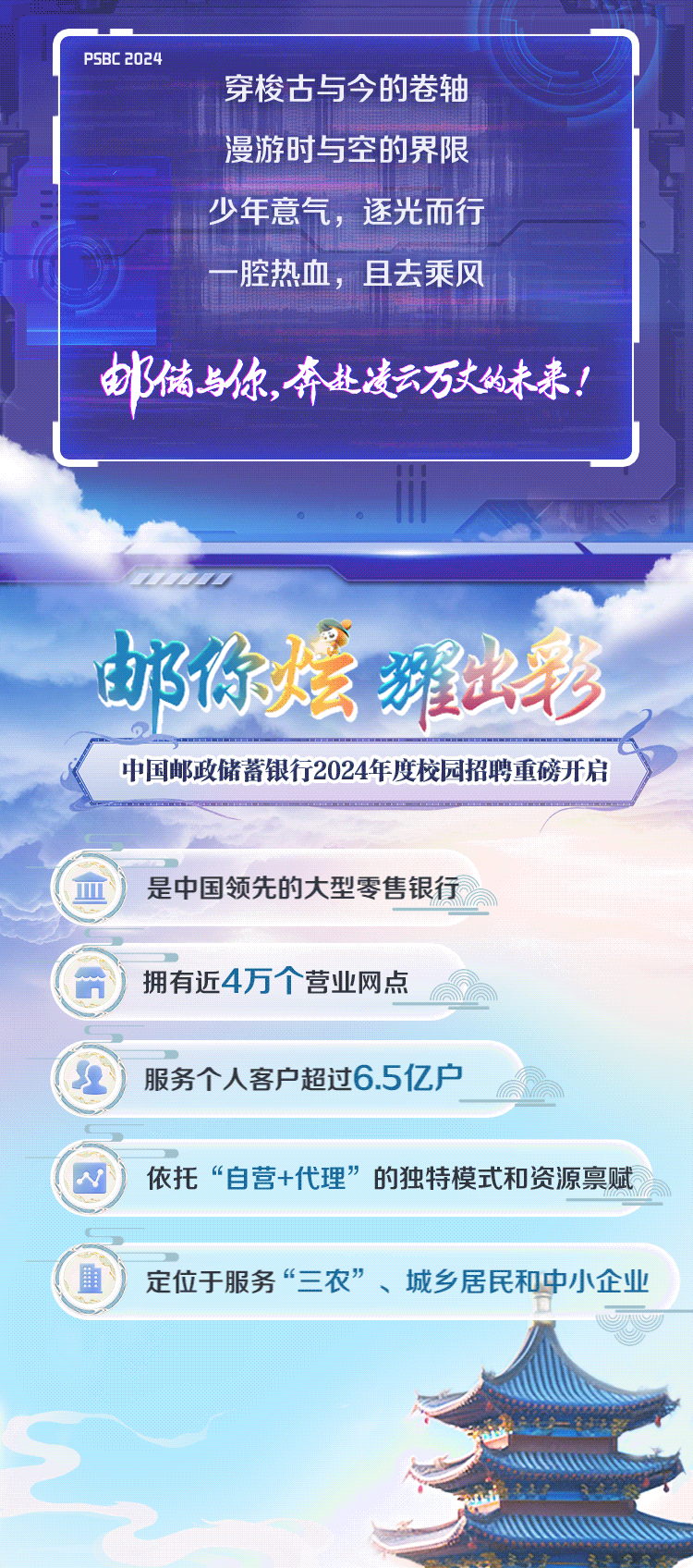 【招聘信息】邮你炫 耀出彩|中国邮政储蓄银行2024年度校园招聘