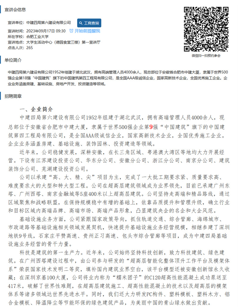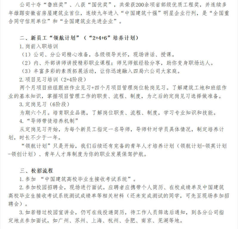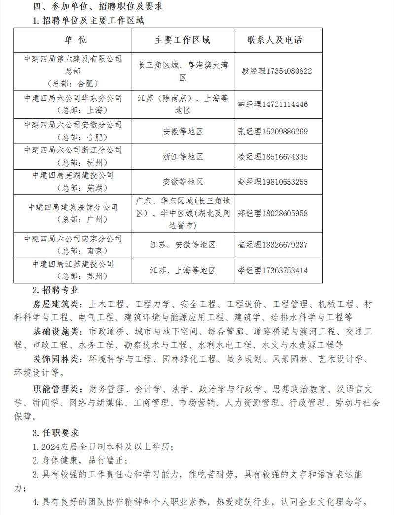 【招聘信息】中建四局第六建设有限公司2024届“善建者”校园招聘