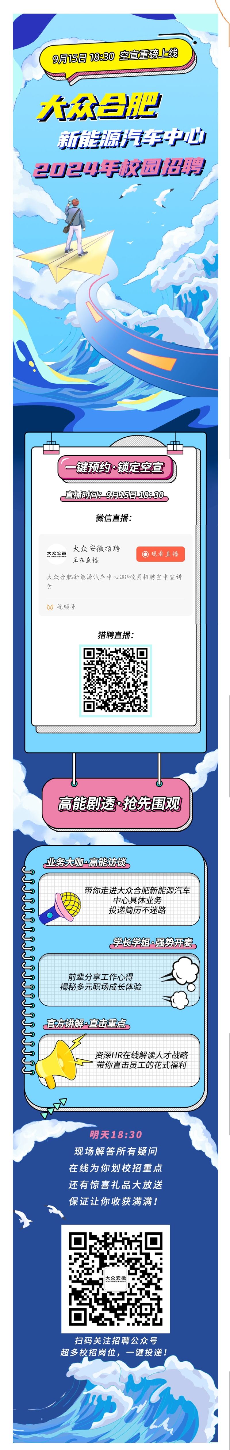 【企业招聘】大众合肥 | 9月15日,校招空宣重磅上线,我们不见不散!