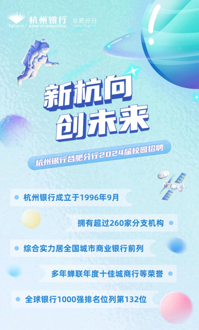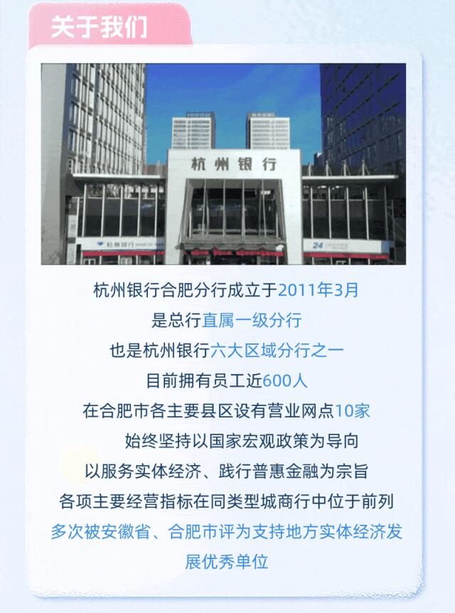 【线上投递】杭州银行合肥分行2024届秋季校园招聘