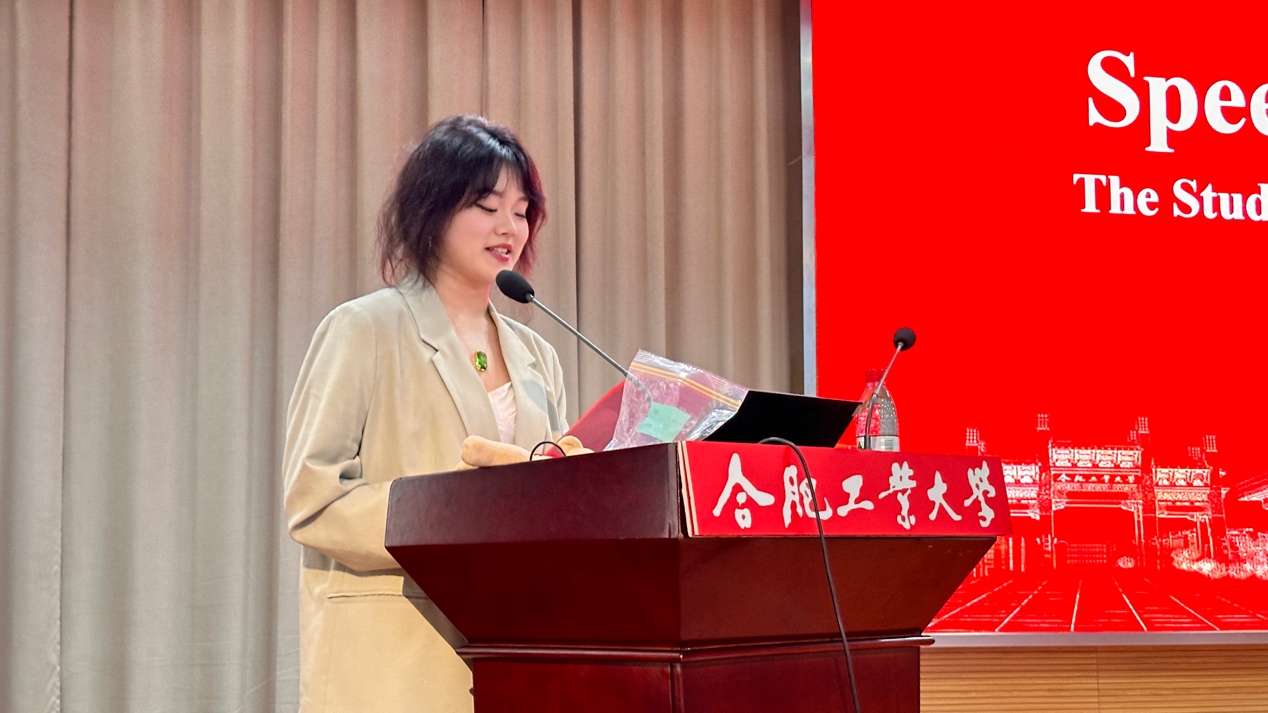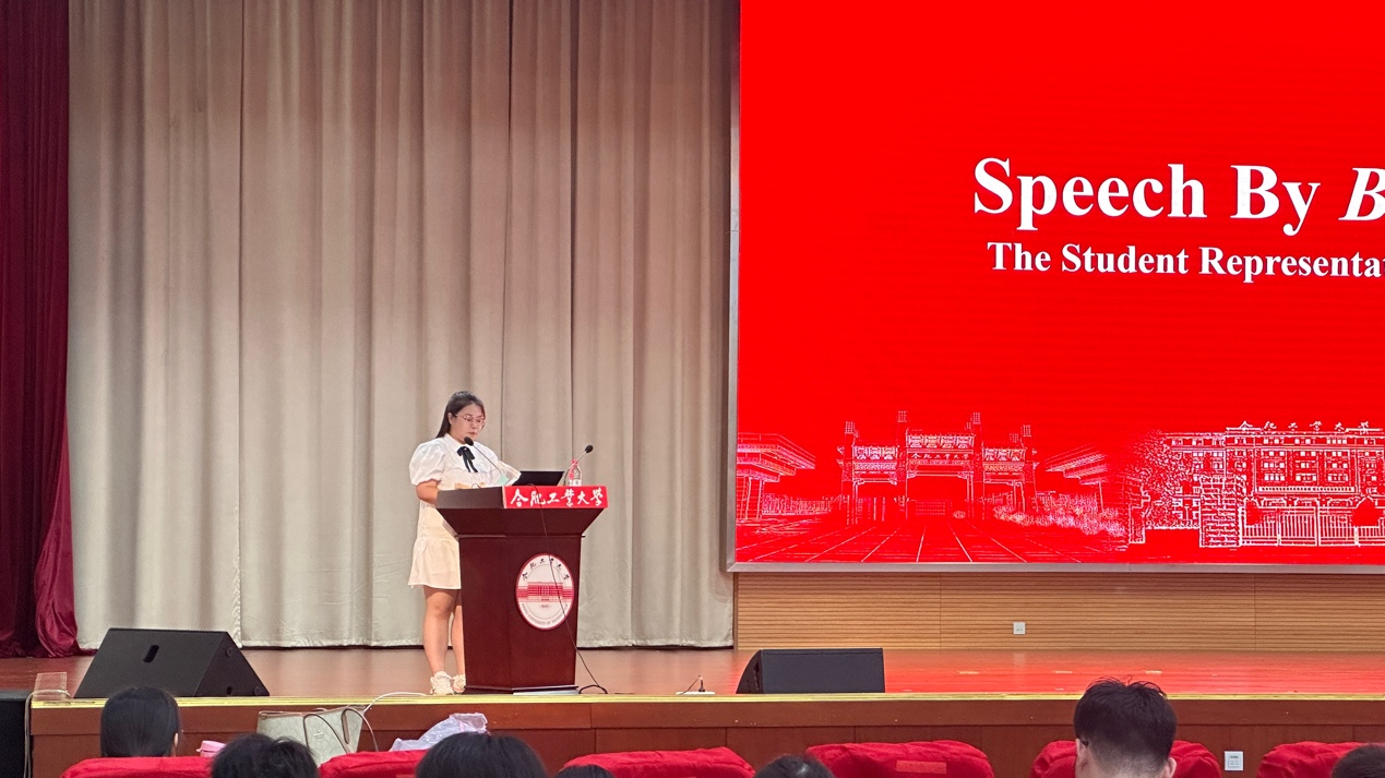 当天晚上,克拉克大学代表与公司全体本科生见面会在科教楼A座大报告厅顺利举行,宣城校区本科生线上同步进行。Chen Yingying和Ercan Balci分别介绍了克拉克大学以及“3+1+1”联合培养项目,员工就赴克拉克大学留学、英语语言挑战等问题进行了提问,并得到了Ercan Balci和Chen Yingying的耐心解答。现场气氛热烈,效果良好。随后,公司22级国际经济与贸易(中外合作办学)专业朱灵娜和23级国际经济与贸易(中外合作办学)专业白若汐作为员工代表分别上台英文发言。最后,克拉克大学代表、公司国际教育中心老师以及23级辅导员王梦茹为顺利通过2023年暑期克拉克大学暑校项目的六位员工颁发证书。