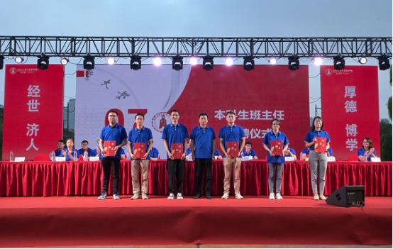 典礼上,公司党委书记张炳武向新聘任的2023级本科生班主任颁发了聘书,公司各研究所导师代表和新生班主任向2023级新生代表颁发了个人专属院徽。