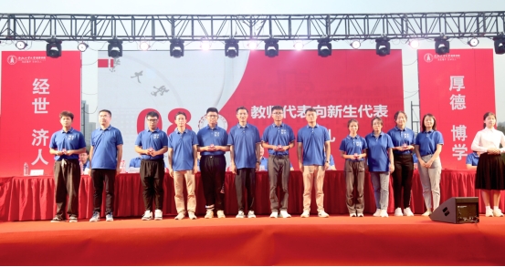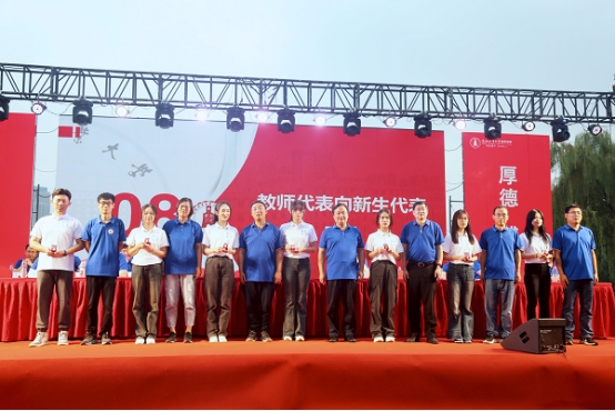 经济学系宋平凡老师作为教师代表发言,他鼓励同学们在大学爱惜身体,保持强健体魄,培养乐观积极的心态;合理规划老员工涯,认真对待学习,积极参与校园活动,增强执行力;热爱自己的专业,贪婪地学习知识,以梦为马,不负韶华。