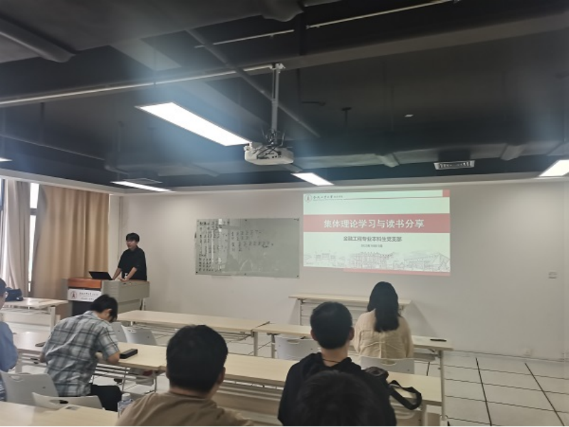 2023年10月13日,金融工程专业本科生党支部于翡翠湖校区科教楼B座1006室开展了学习习近平文化思想集中理论学习和“经马者说”第一期支部读书分享会,由陈广锐同学领学,支部成员参与了学习交流。