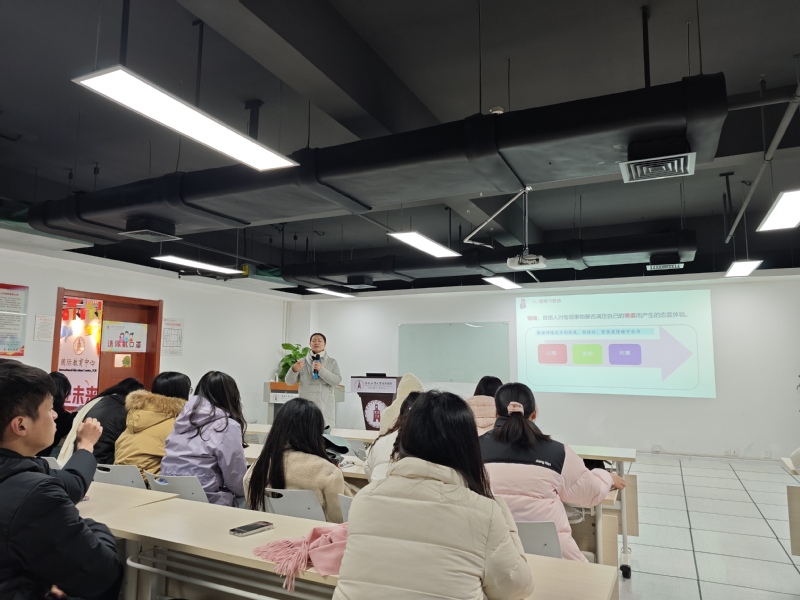 讲座中,邝春霞首先以生动的案例引入,介绍了情绪的作用及定义;随后介绍了不良情绪产生的原因、不良情绪的影响以及不同人对不良情绪的反应。最后,向同学们提供了评估压力的方法,向同学们说明了如何有效管理情绪,做情绪的主人。