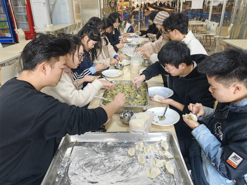 活动现场,来自汉族、回族、满族、苗族、蒙古族等各民族20余名员工聚在一起包饺子、话家常,分享家乡的冬至习俗和特色美食,现场氛围轻松愉悦。同学们各显身手,在餐厅师傅的协助下,一盘盘皮薄馅大、各式各样的饺子摆上了桌面,同学们围坐在一起,品尝着香气四溢、汤汁鲜美的饺子,感受到了浓浓的节日氛围,也增进了彼此间的情感和友谊。