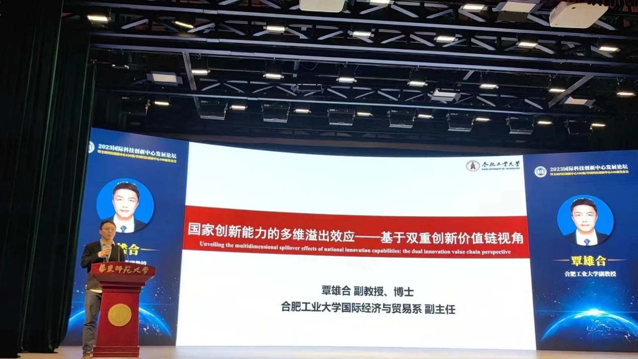 2023年12月2日,公司国际经济与贸易系教师覃雄合受邀参加2023国际科技创新中心发展论坛,并在发展论坛中做题为“国家创新能力的多维溢出效应——基于双重创新价值链视角”的主题汇报。此次会议在华东师范大学举办,论坛主题为科技创新与城市高质量发展,论坛同时也发布了全球科技创新中心100强(2023)和中国科技创新中心100强(2023)。来自全国40多所高校、130多家机构的200多位专家学者齐聚华东师范大学,共谋科技强国建设之百年大计。