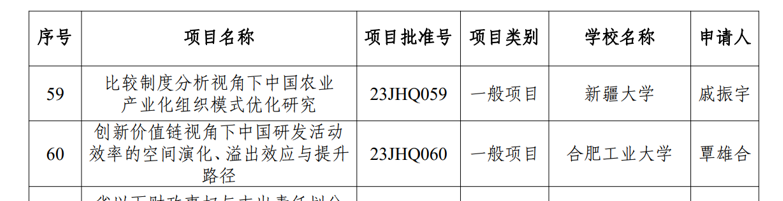 教育部社会科学司于01月10日公布了2023年度教育部哲学社会科学研究后期资助项目评审结果的公示名单,此次共有103个项目通过评审。公司覃雄合副教授申报的《创新价值链视角下中国研发活动效率空间演化、溢出效应与提升路径》通过教育部哲学社会科学研究后期资助一般项目评审并公示。