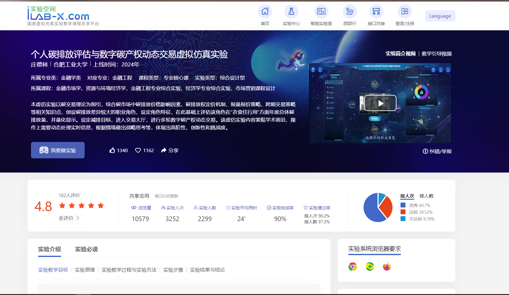 实验名称:个人碳排放评估与数字碳产权动态交易虚拟仿真实验