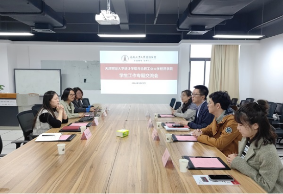 3月25日上午,天津财经大学统计公司党委副书记钱泓江一行来公司交流员工工作,公司党委副书记兼纪委书记谢晶晶、副处级组织员凡菊、员工工作办公室相关人员参与此次交流会。