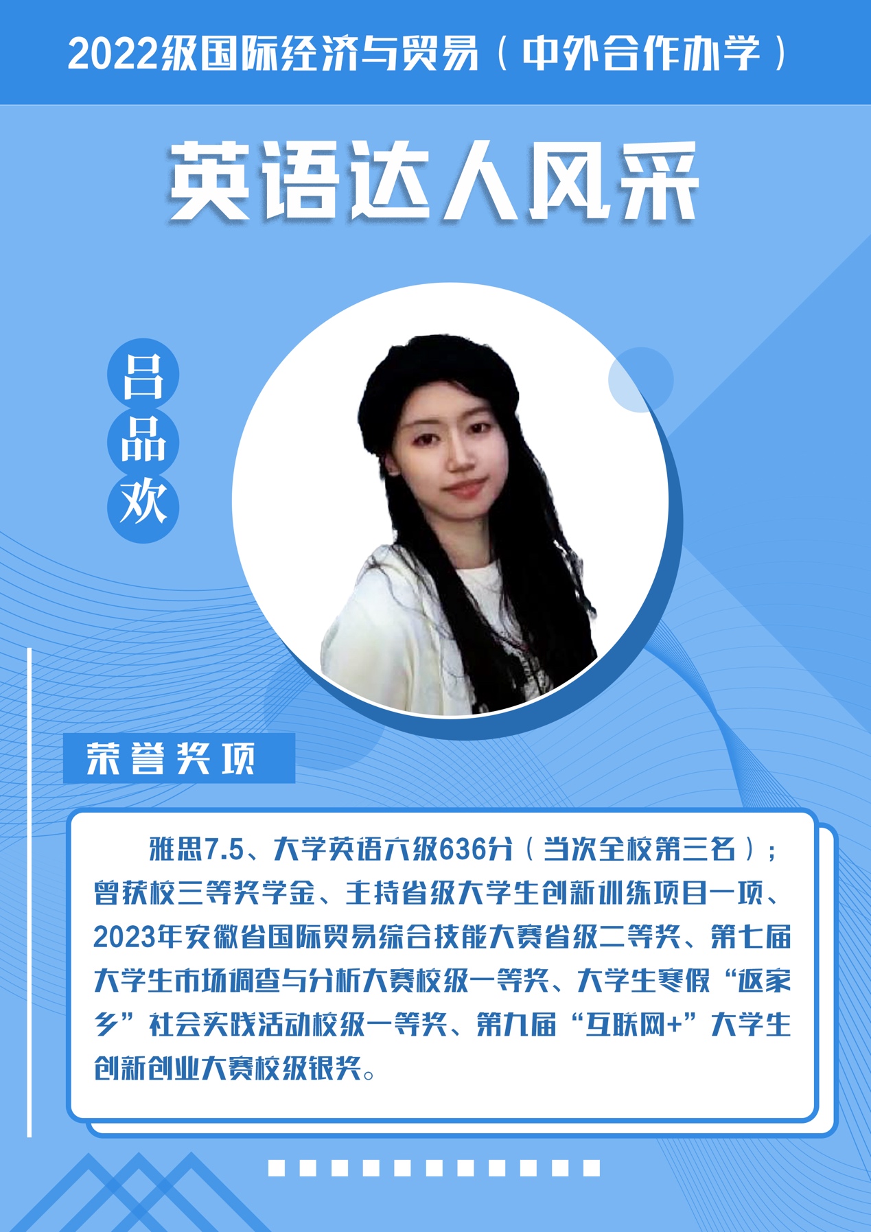 本期专访我们邀请了2022级国际经济与贸易(中外合作办学)专业的吕品欢同学,让我们一起来听听她在英语学习方面的心得体会吧!