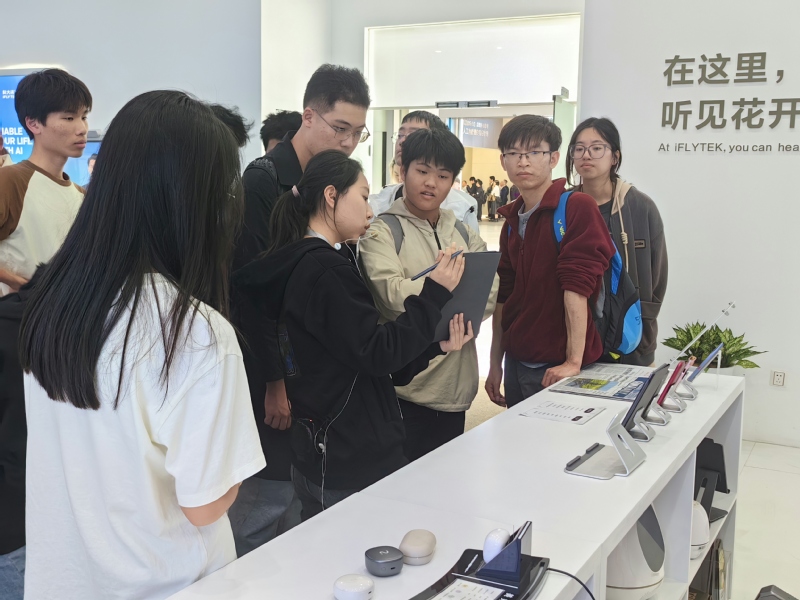 活动过程中,工作人员带领同学们参观了科大讯飞的展区,详细介绍了科大讯飞在人工智能领域的最新技术成果。同学们认真聆听讲解,深入了解了各类创新产品的研发过程,并通过工作人员的演示,了解到各类创新产品在同声翻译、在线教育、智慧就医、数字养老等领域的应用。此外,在人工智能体验馆,同学们还体验了AI+教育、AI+汽车、AI+政法、AI+城市、AI+医疗等产业生态,也近距离感受到了星火认知大模型在教育、医疗、工业、办公等领域的广泛应用场景。同学们纷纷表示,通过本次参观交流,他们更加全面了解了人工智能技术,也进一步明确了未来职业规划方向,同学们创新创业的兴趣热情空前高涨。