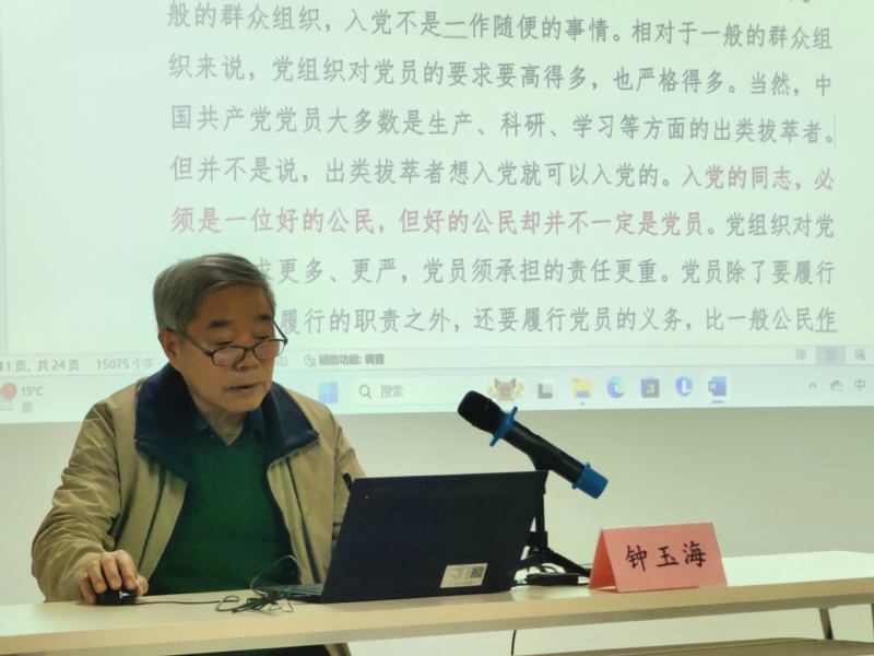 4月17日晚,beet365分党校第71期老员工入党积极分子班于翡翠科教楼B座1004室开展主题党课学习。校关工委钟玉海教授受邀担任主讲嘉宾,公司入党积极分子班全体学员参加了此次党课学习。