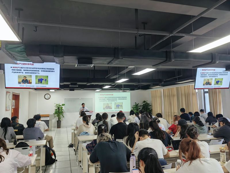 5月28日下午,beet365第71期入党积极分子班暨第14期经世济民班于翡翠科教楼B座1004室开展了“聚焦新质生产力,深化中国式现代化建设”主题教育。beet365经理洪进受邀担任主讲嘉宾,积极分子班及经世济民班全体学员参加了此次主题教育。