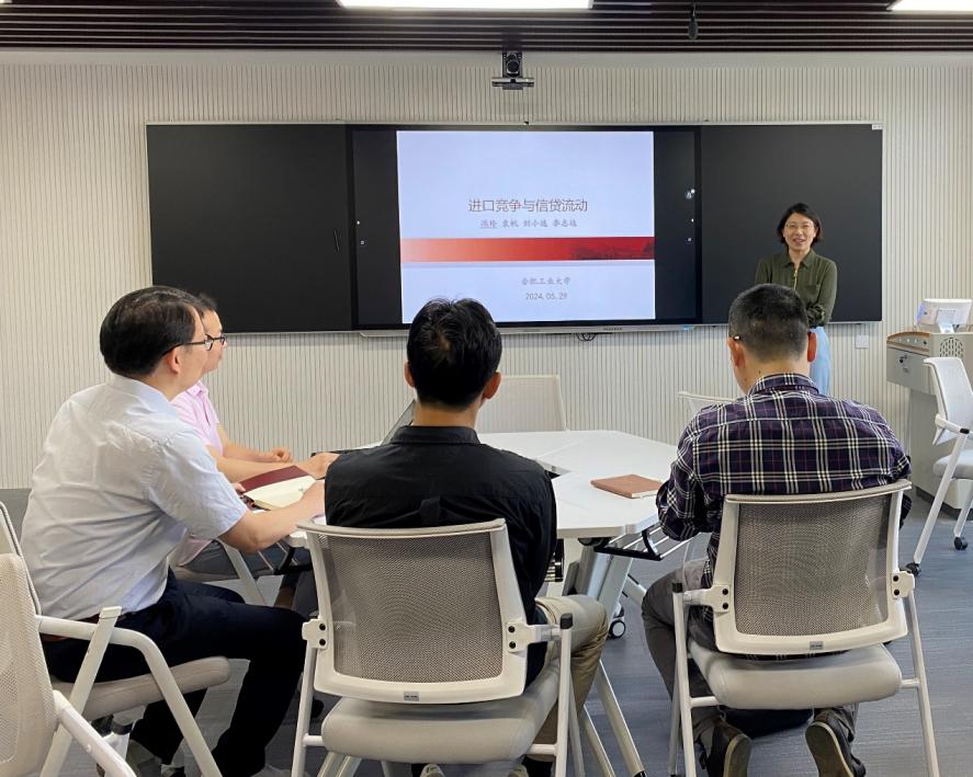 报告会上,冯玲以“进口竞争与信贷流动的关联”为研究对象,以中国入世前后异质性企业信贷变化差异的特征事实为切入点,引出研究所关注的重点问题。通过构造简洁的数理模型厘清进口竞争影响信贷流动的内在机制,并结合中国工业企业数据库进行经验检验。研究发现对外市场开放能够通过竞争激励渠道,提高金融资源配置效率,促进中国经济高质量发展。