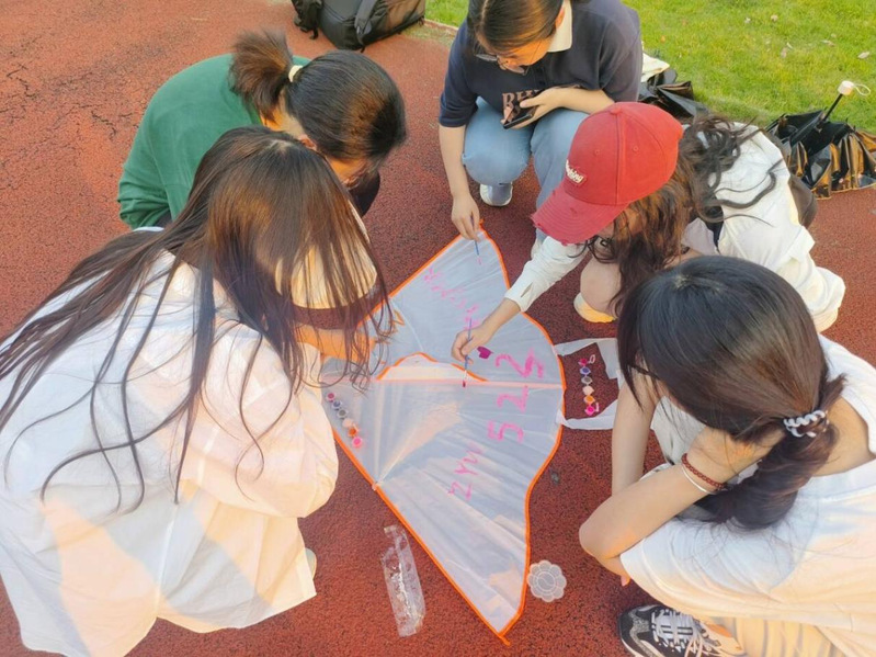 在心理委员的组织下,活动以寝室为单位展开,同学们充分发挥想象力和创造力,对空白风筝进行了涂鸦和彩绘。各组成员围绕活动主题,在风筝上写下近期的烦恼与焦虑,以及对未来的美好期许,并绘上属于寝室的独特图案。制作完成后,寝室长分别展示了各寝室的风筝作品,分享了风筝的制作过程和心得体会。在夕阳的余晖下,同学们奋力奔跑将风筝放飞,看着亲手制作的风筝在天空翱翔,同学们的脸上洋溢着灿烂的笑容,操场上一片欢声笑语。
