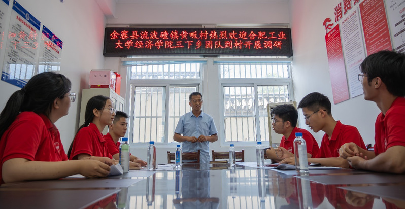 深入基层政府前沿,聚焦本地特色产业。2024年7月5日下午,实践团队前往金寨县黄畈村党群服务中心进行采访调研,村党委书记戴从群详细介绍了黄畈村近年的经济发展状况,并接受了实践团队的相关采访。据了解,黄畈村围绕相关政策指引,基于乡村振兴背景大环境,依托本地天然资源优势,大力推动基础设施和本地支撑特色农手工业产品企业建设,并以此为机加快本地特色旅游资源开发和企业融资,引导乡村振兴持续化,健康化发展。