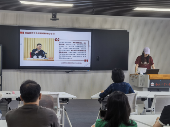 理论学习第一部分,学习习近平总书记在全国教育大会上的重要讲话精神。范泽琳同学介绍了全国教育大会的召开背景,回顾了我国全面推进教育强国建设的发展历程,带领同学们深入学习习近平总书记在大会上阐述的教育强国建设的科学内涵和基本路径、要处理好的重大关系,以及全面推进教育强国建设的战略任务和重大举措。学习过程中,王忆等同学围绕“推动义务教育优质均衡发展,解决好人民群众关于教育的急难愁盼问题”这一主题进行了讨论交流。