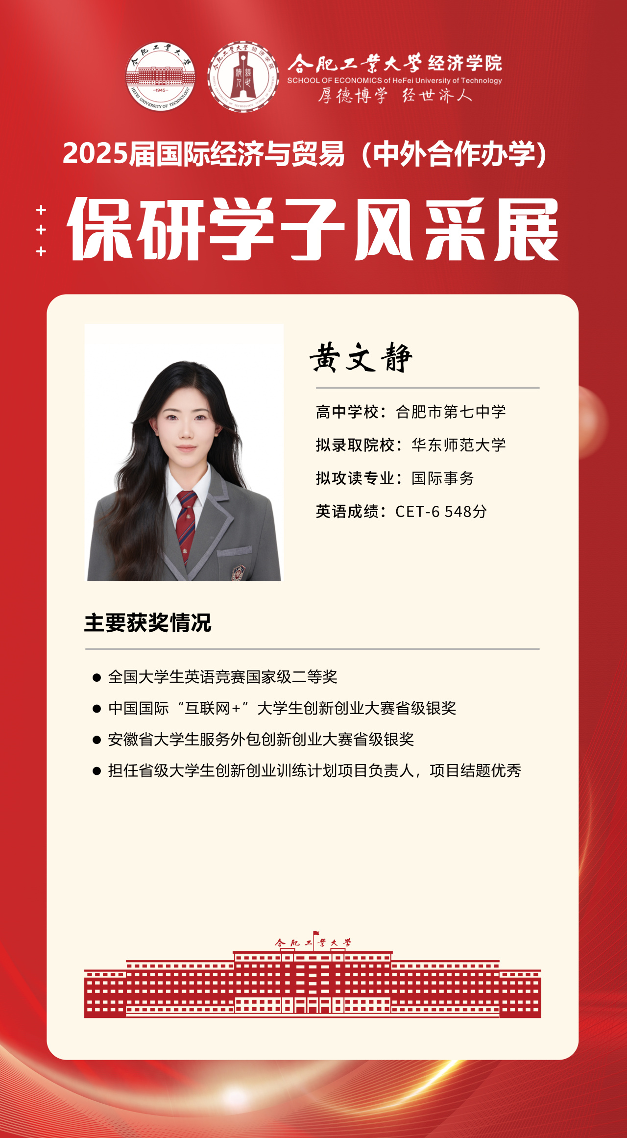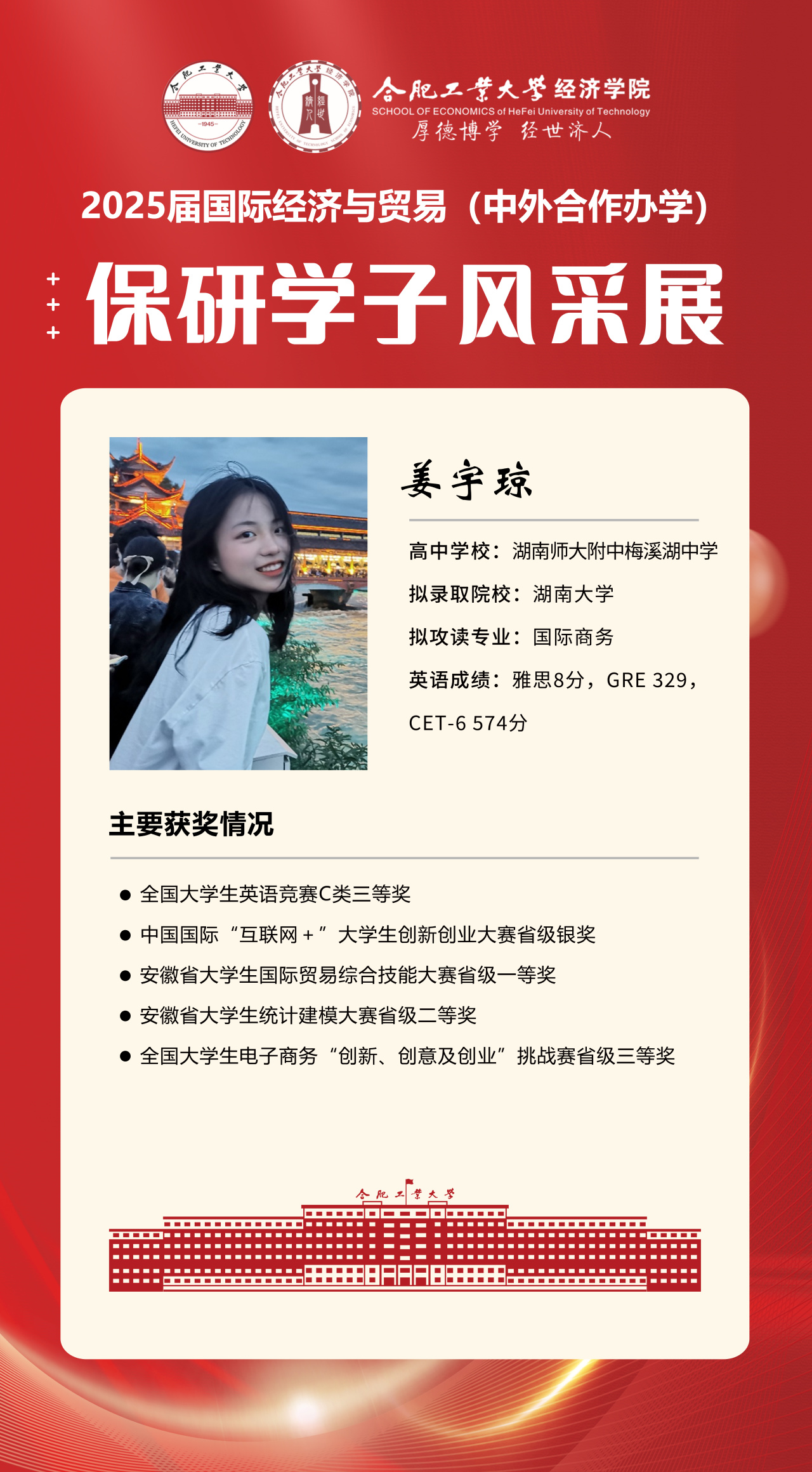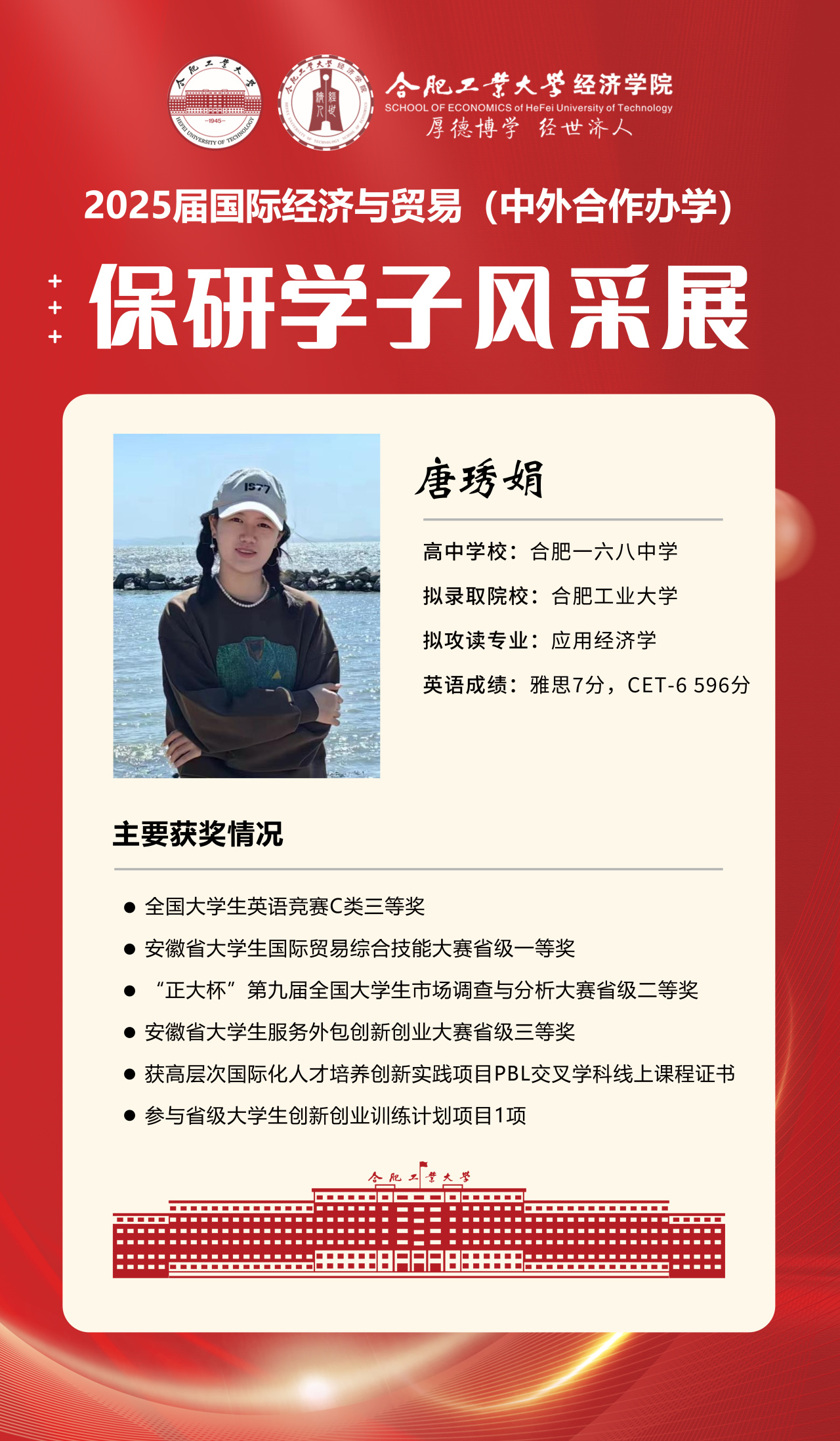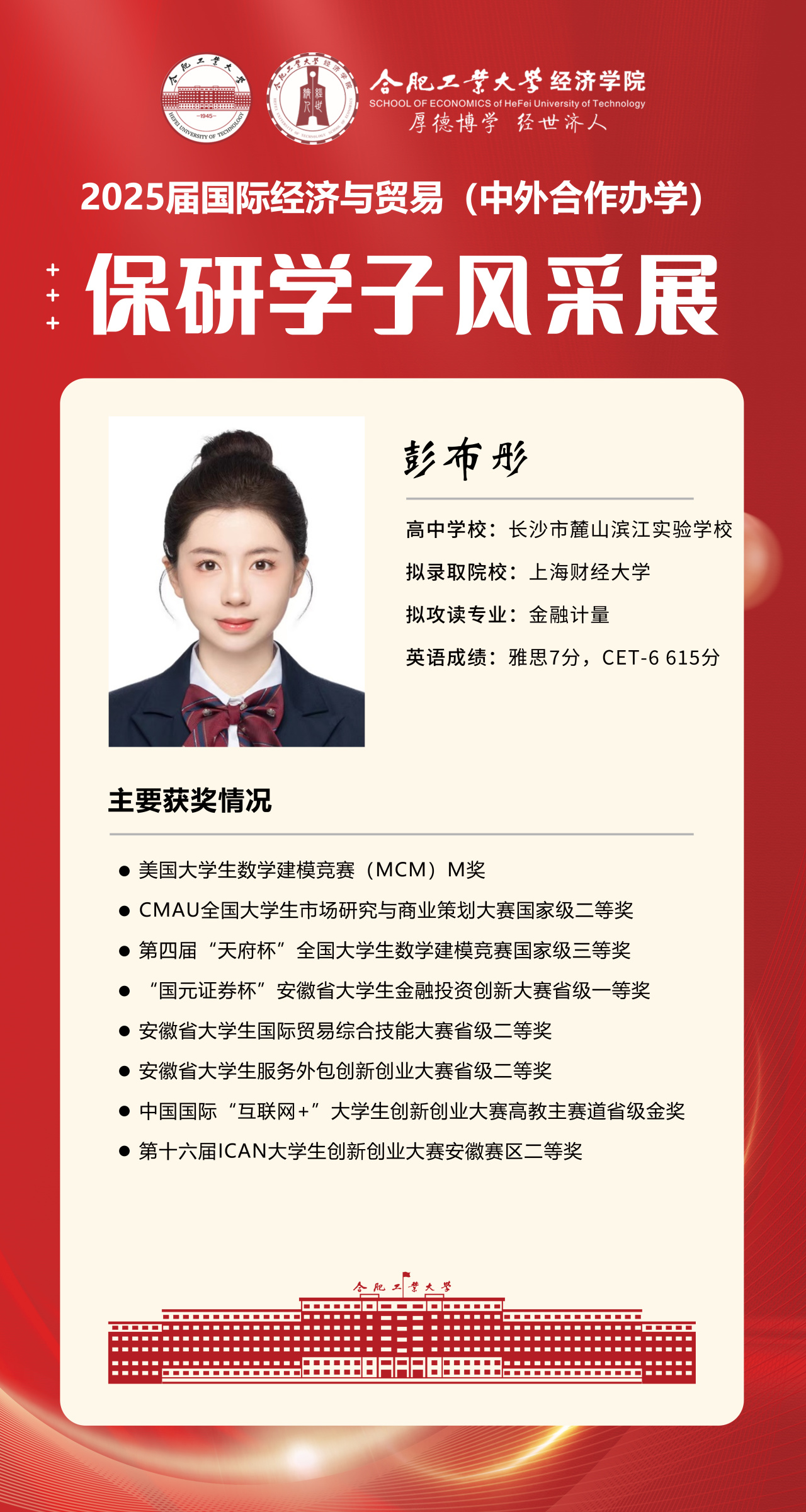 2025届beet365官方网站国际经济与贸易(中外合作办学)15名优秀推免生全部成功推免至中国科学技术大学、上海财经大学、对外经济贸易大学等“双一流”名校继续深造,充分展现了“强语言、精专业、通规则、能跨界”的培养特色。下面我们一起来看看推免学子的风采吧!