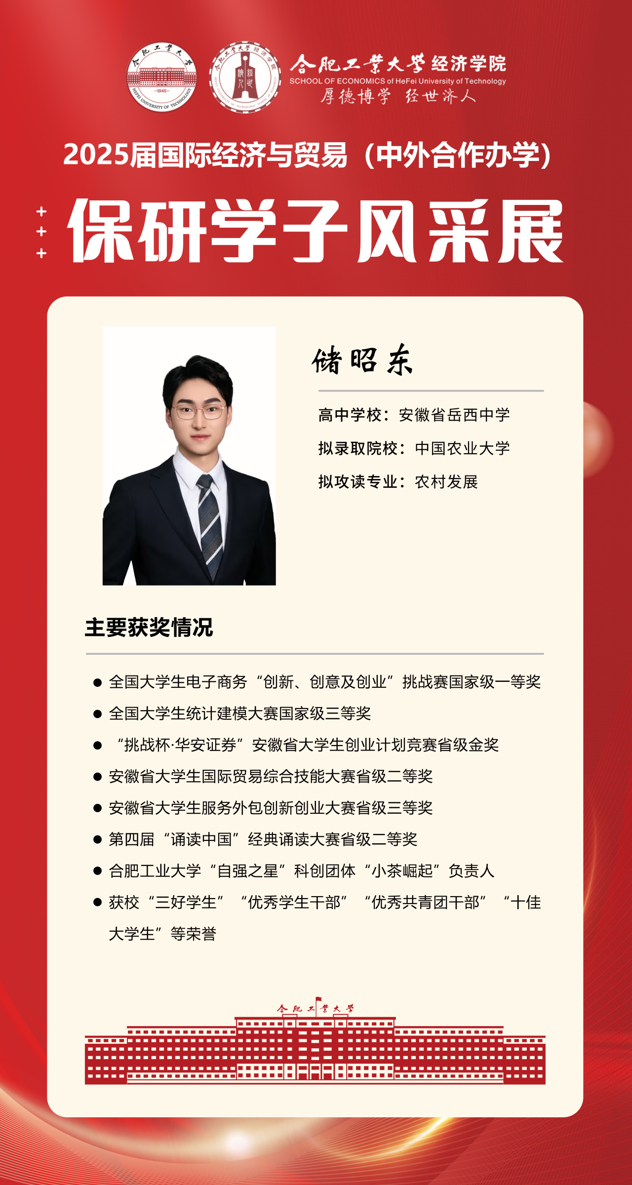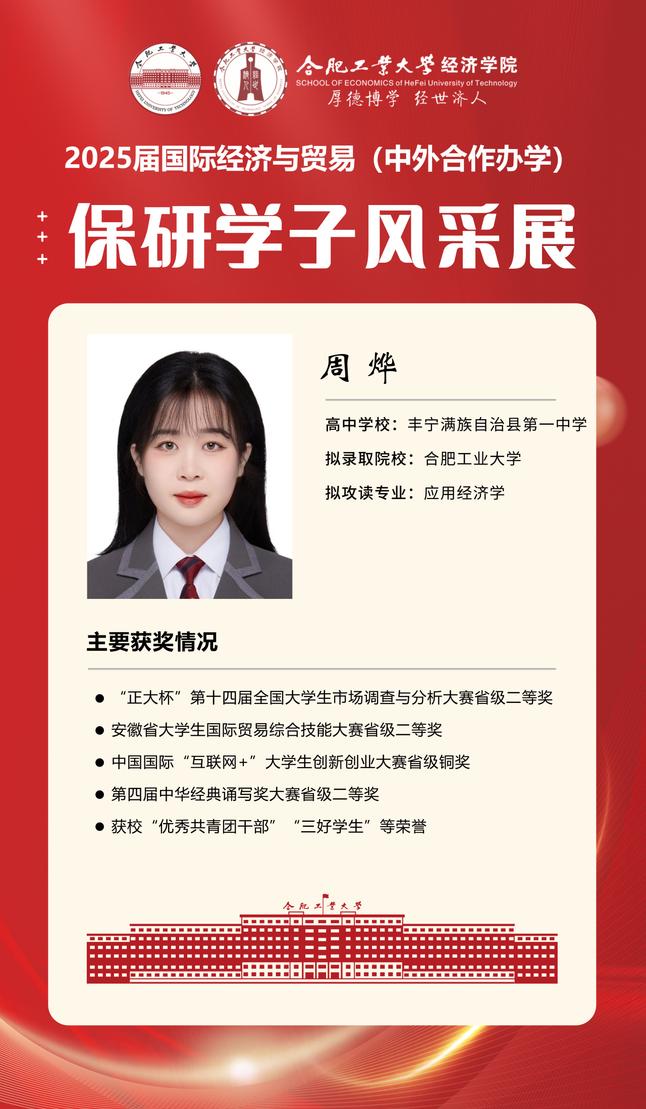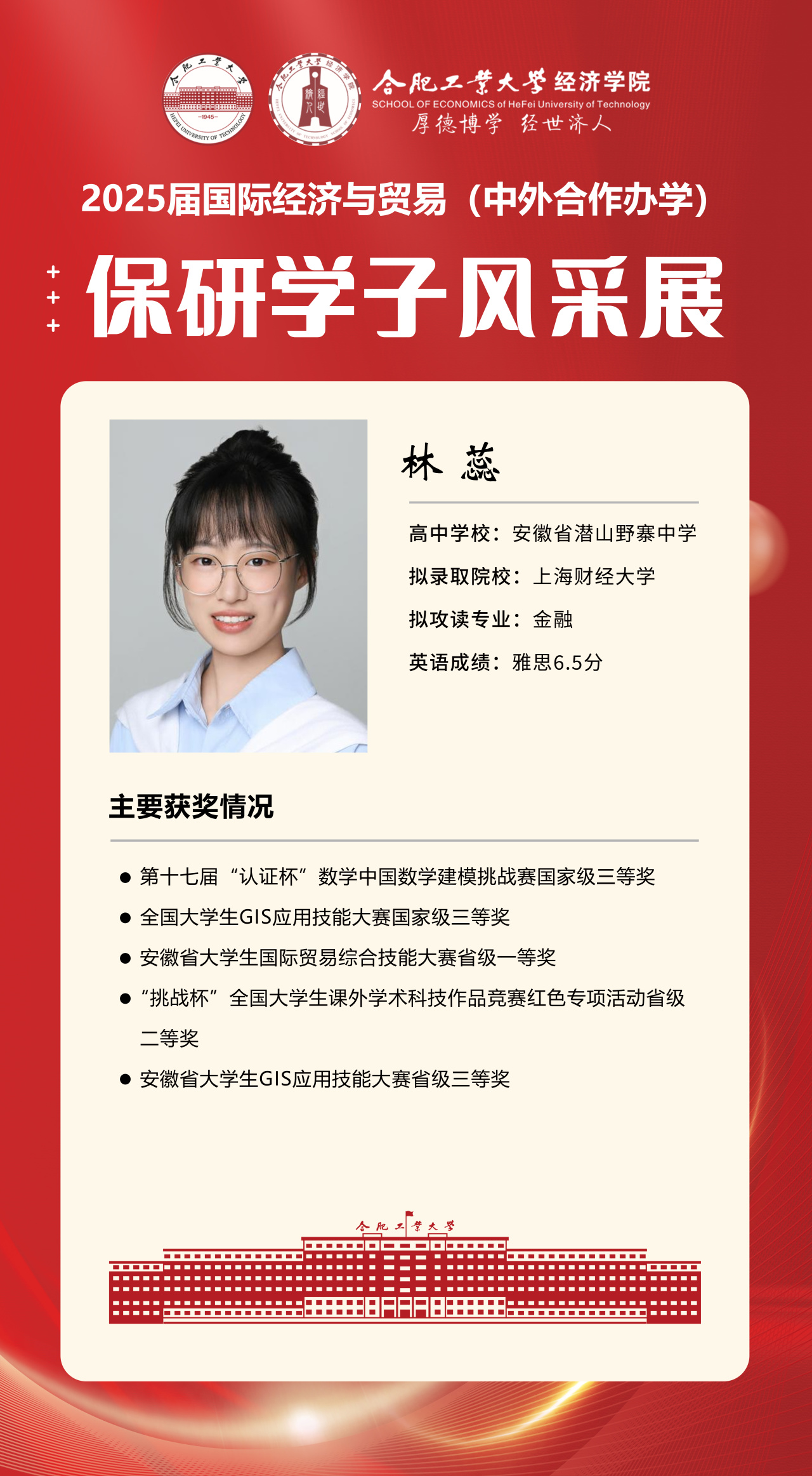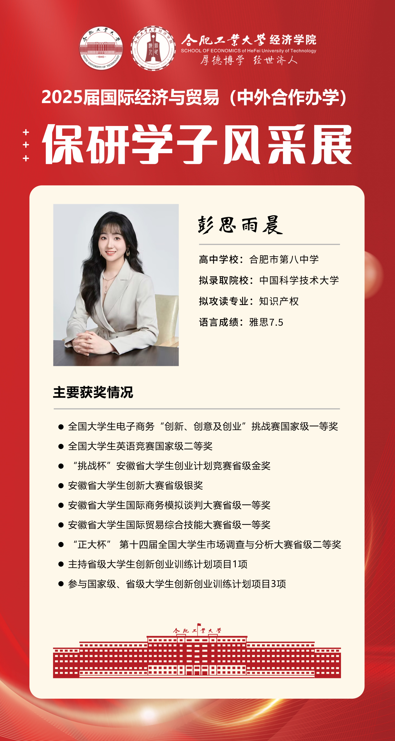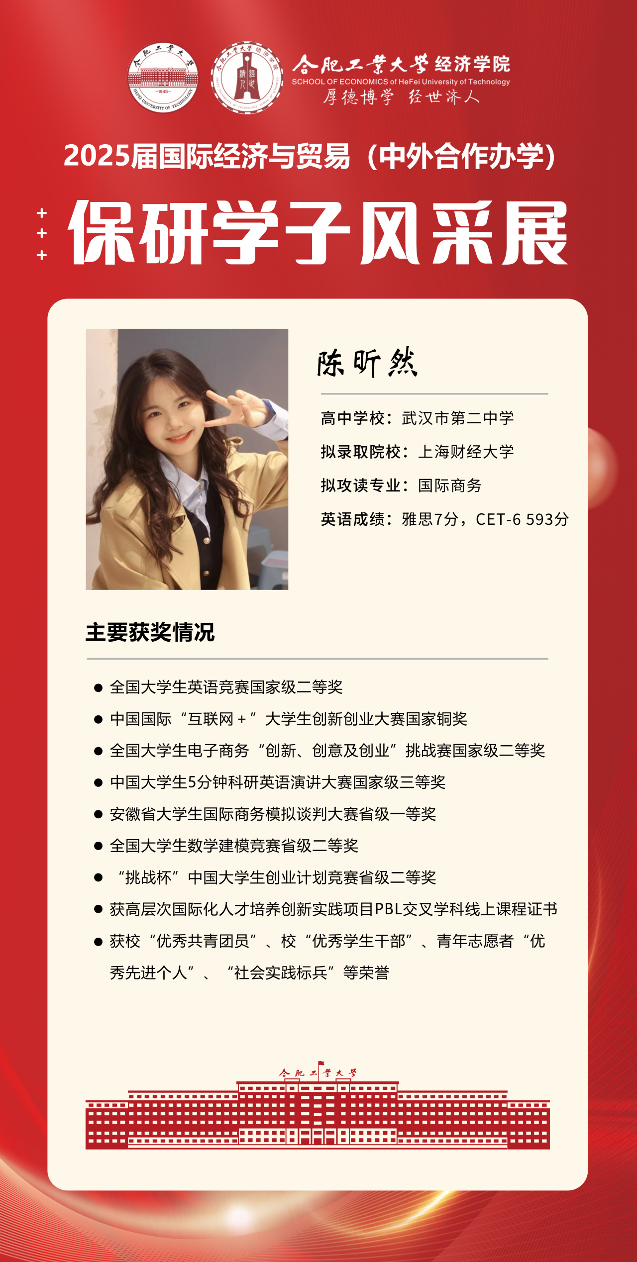 2025届beet365官方网站国际经济与贸易(中外合作办学)15名优秀推免生全部成功推免至中国科学技术大学、上海财经大学、对外经济贸易大学等“双一流”名校继续深造,充分展现了“强语言、精专业、通规则、能跨界”的培养特色。下面我们一起来看看推免学子的风采吧!