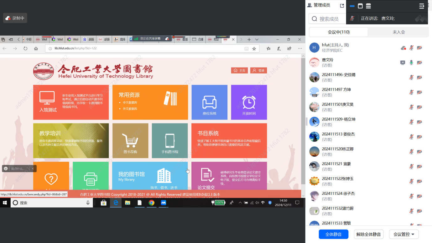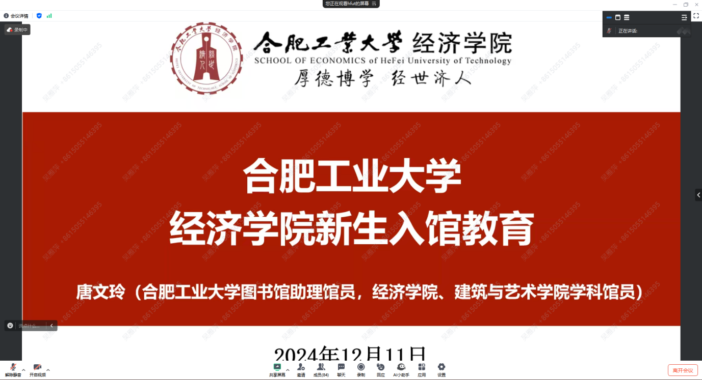 本次讲座通过腾讯线上会议的方式举行,由图书馆资深馆员唐文玲老师主持。首先,唐老师向新生们介绍了图书馆的空间布置和自助设施,包括借阅区、自习室、电子阅览室以及各类学习辅导区。她强调了图书馆作为学术资源中心的重要性,并鼓励员工们充分利用这些资源来辅助学习和研究。