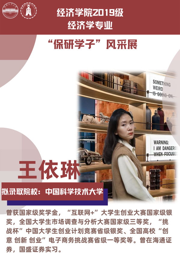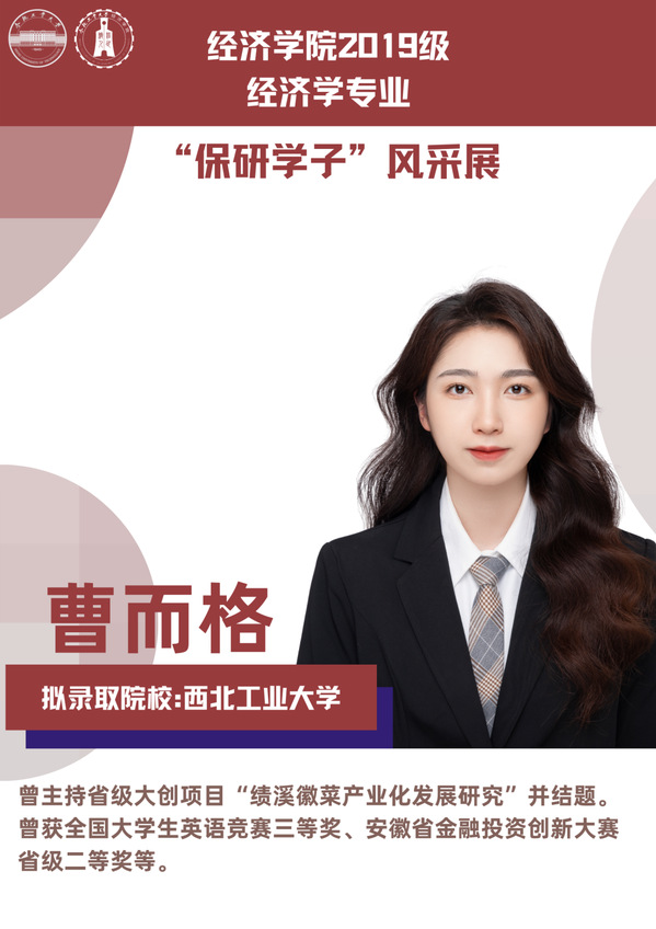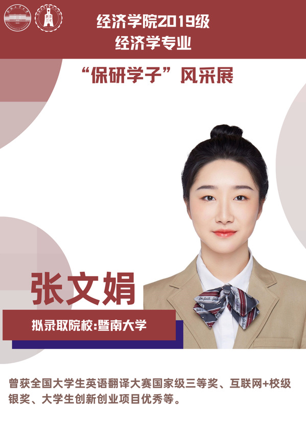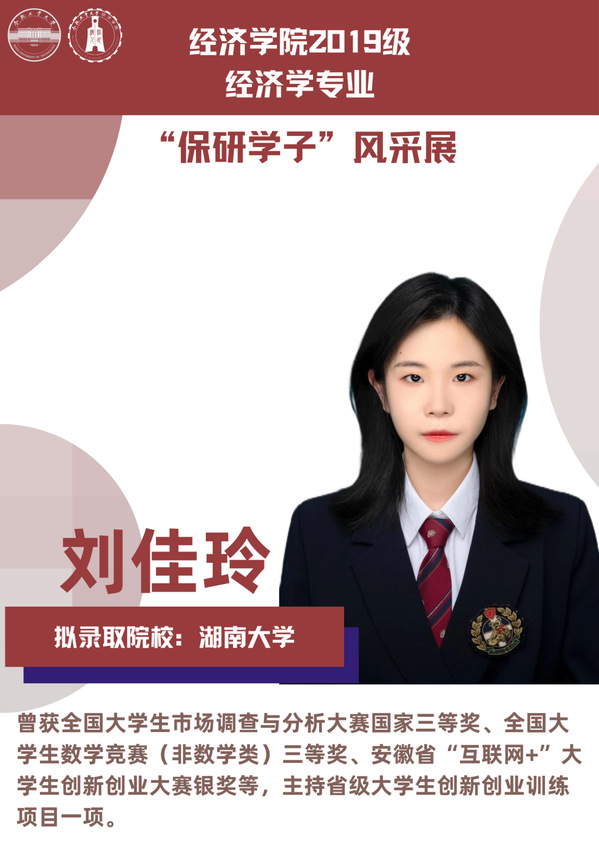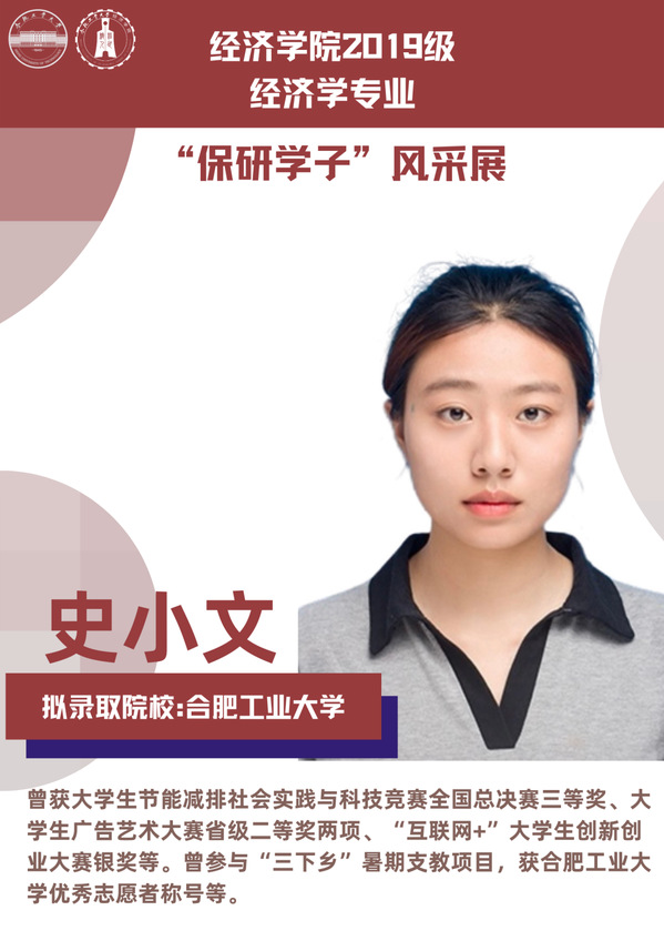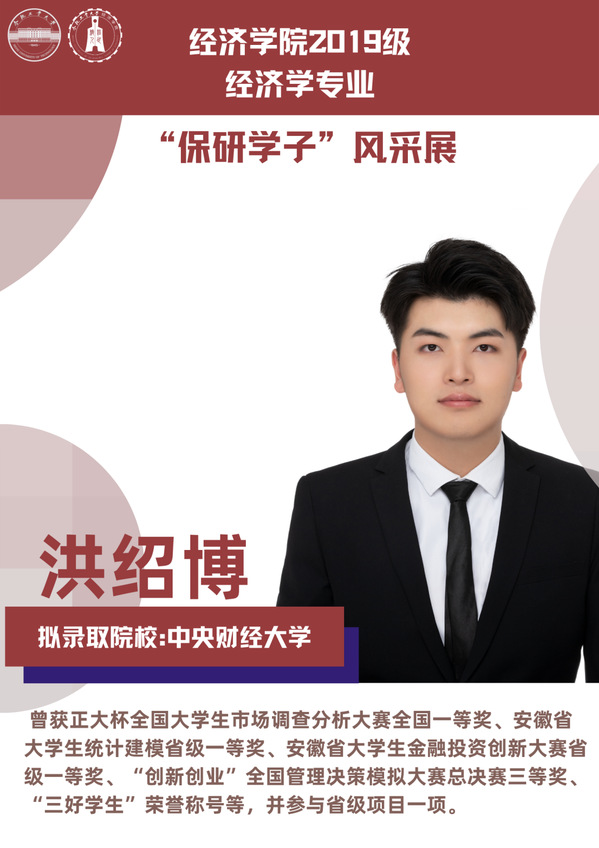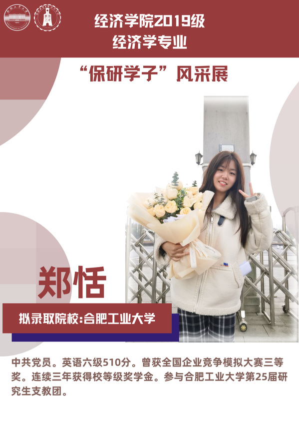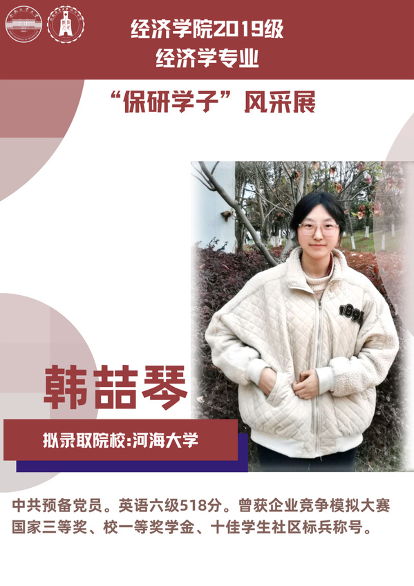 beet365官方网站经济学专业前身为贸易经济专业,1999年更名为经济学专业,2012年宣城校区同步招生。2021年中央赛道评审中,获批“省级一流本科专业建设点”。同年与美国克拉克大学本硕博贯通式联合培养机制正式落地。本专业顺应人工智能、数字经济与新经济的时代要求,以“经济分析与数字治理”为特色方向,培养能够熟练应用现代经济分析工具和数字经济理论及技术,为政府、企事业部门提供经济分析、预测与治理的新文科高素质专业人才。2019级经济学专业员工中,19名推免生被中国科学技术大学、中央财经大学、吉林大学、北京理工大学等国内名校拟录取。本期推文将带领大家共同领略2019级经济学专业“保研学子”的风采。