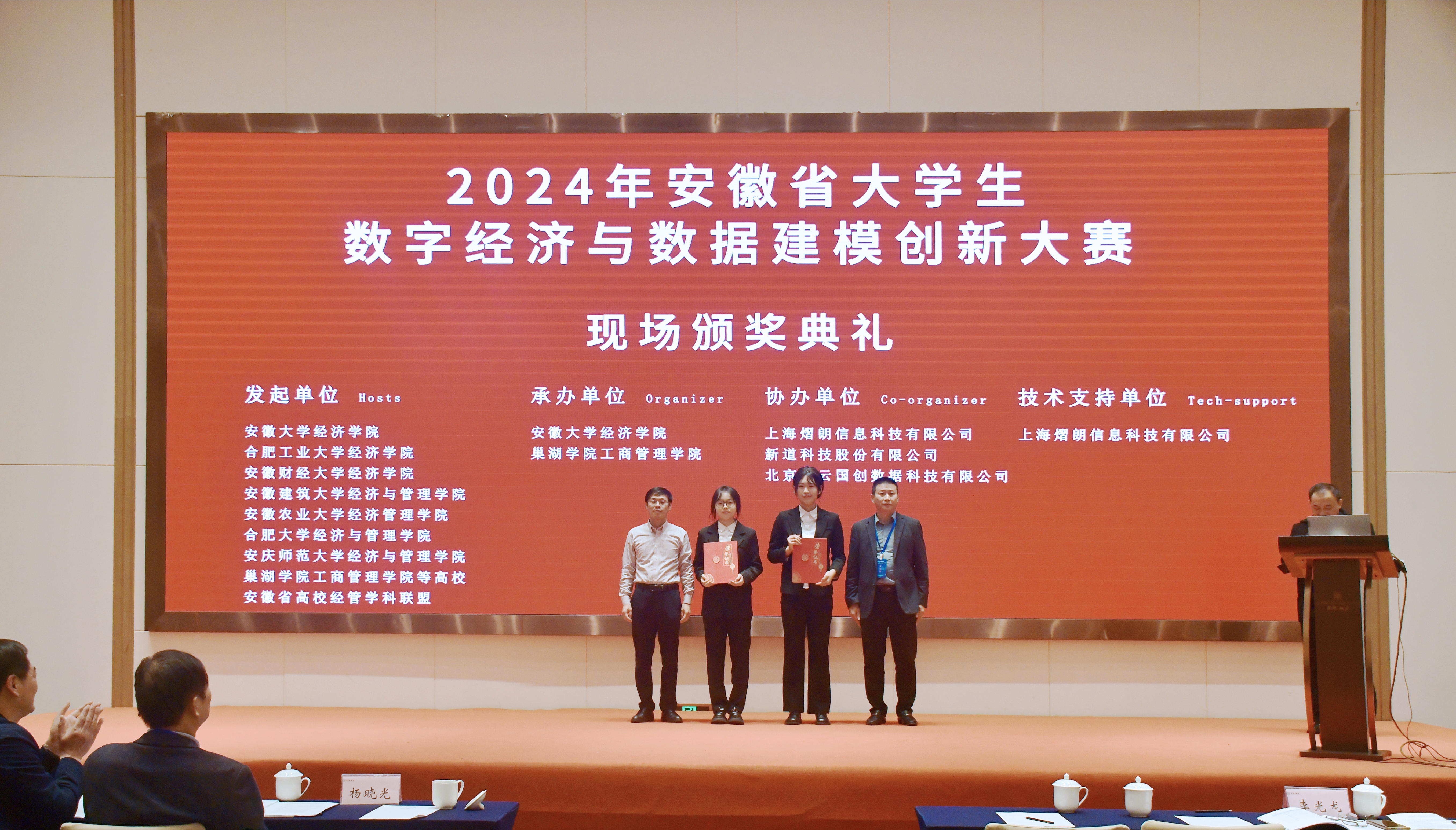 12月7日,由安徽大学与巢湖公司联合主办的安徽省老员工数字经济与数据建模创新大赛决赛在巢湖国际饭店圆满落幕。经过激烈比拼,由经济系孙雅慧老师指导、公司学子李佳璇、张艳创作的参赛作品《数字经济补贴的创新激励效应》荣获本科组特等奖。